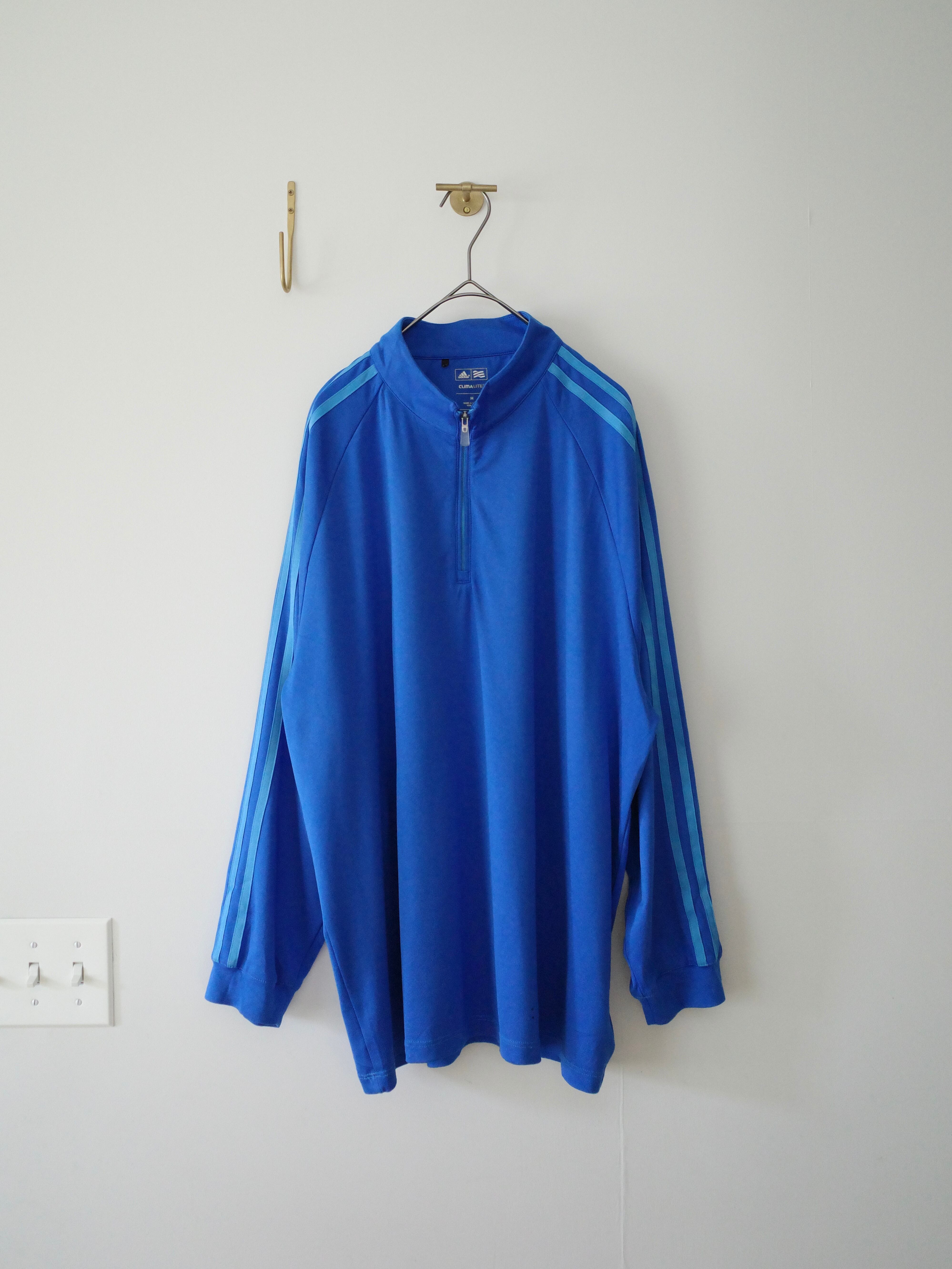 薄手のジャージ素材ですが、CLIMA LITE(クライマライト)と言うグローバル基準を満たしたアディダスの機能性シリーズで、吸汗速乾性に優れた素材なので見た目より軽く着心地良き◎