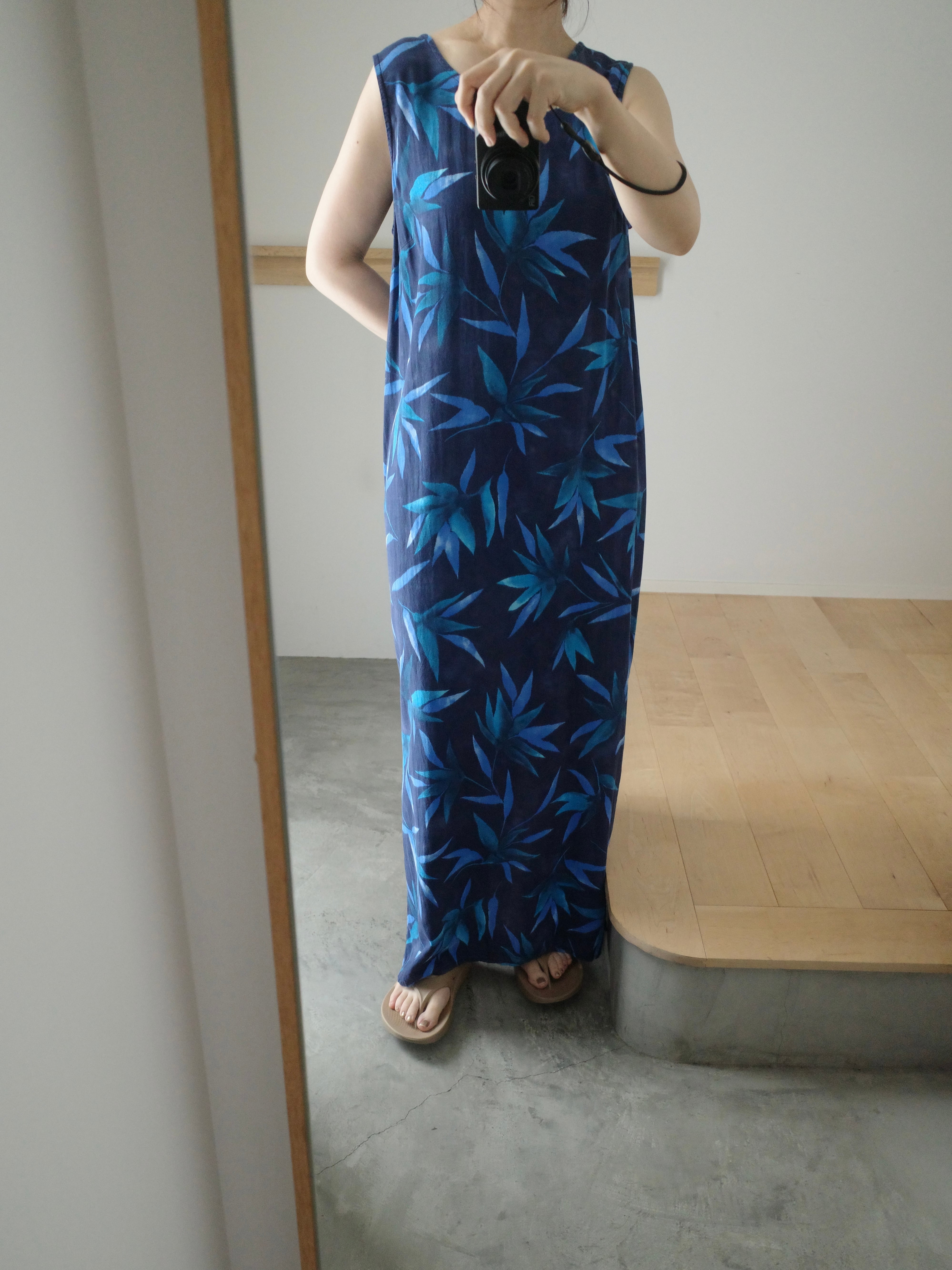 一見細身シルエットですが、裾両サイドにスリット入りだったり、生地もサラリとコットン風のレーヨンなのでストレッチもあり、安心の着心地◎