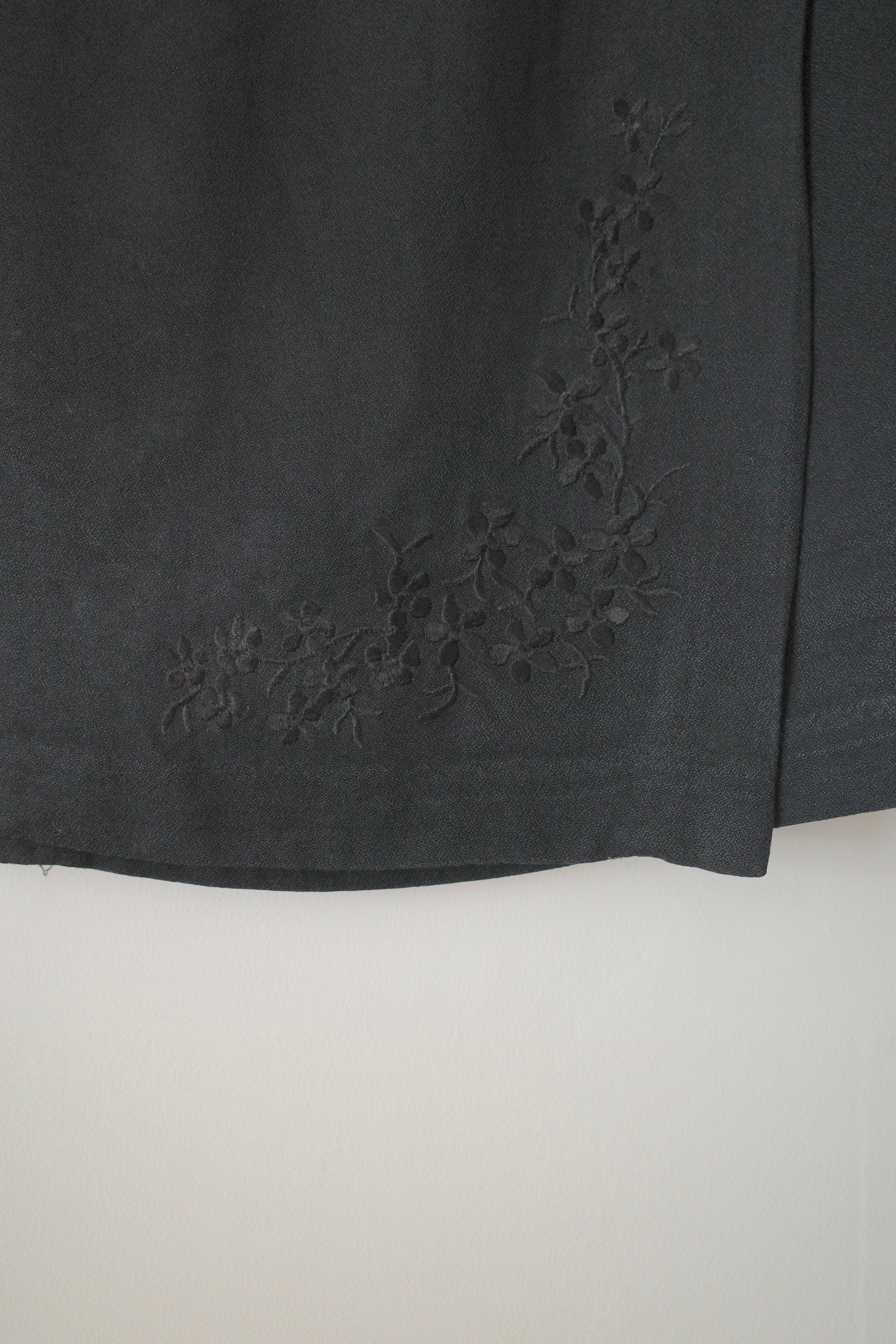 さりげないお花の刺繍が入ったラップスカート。