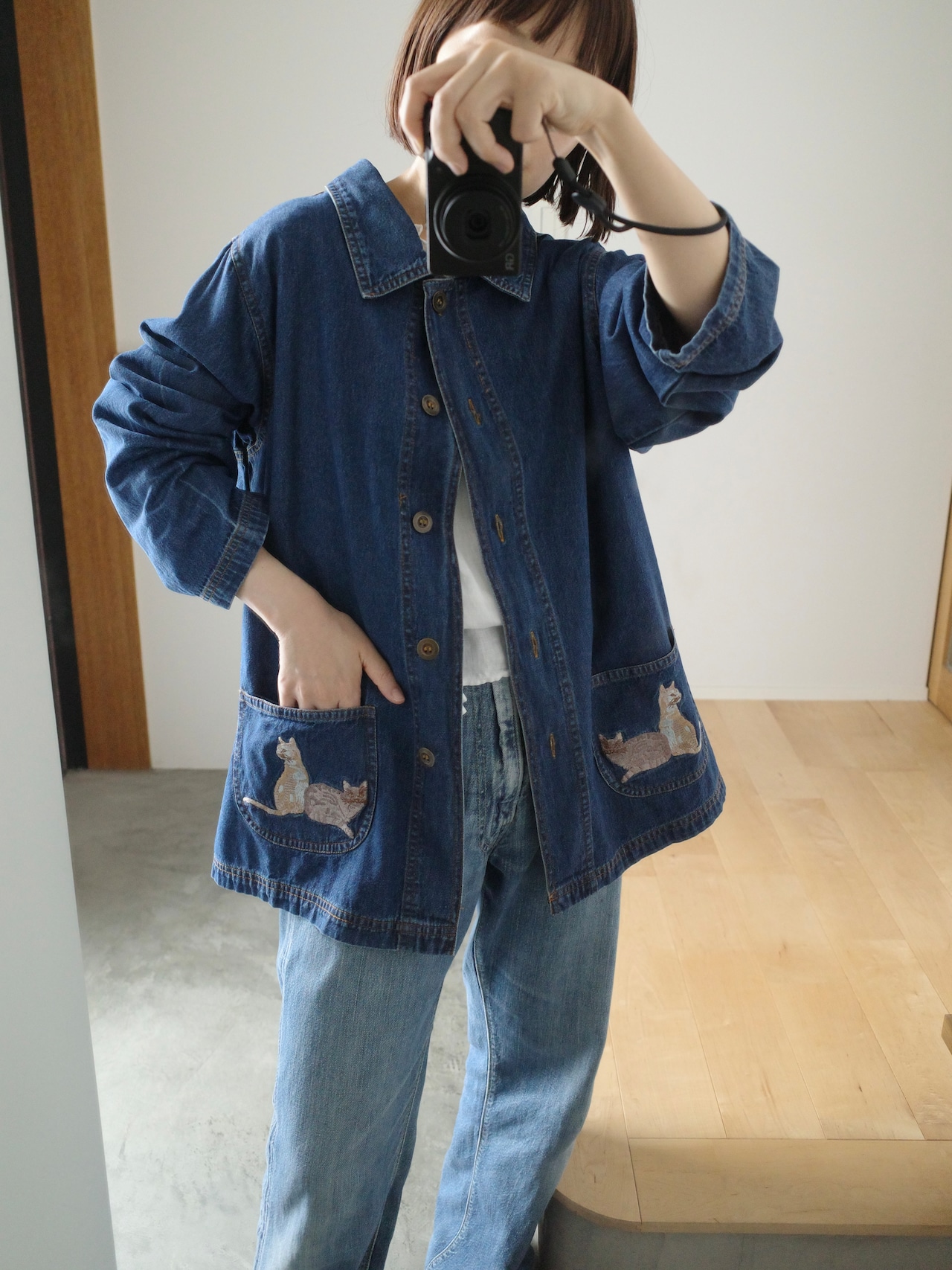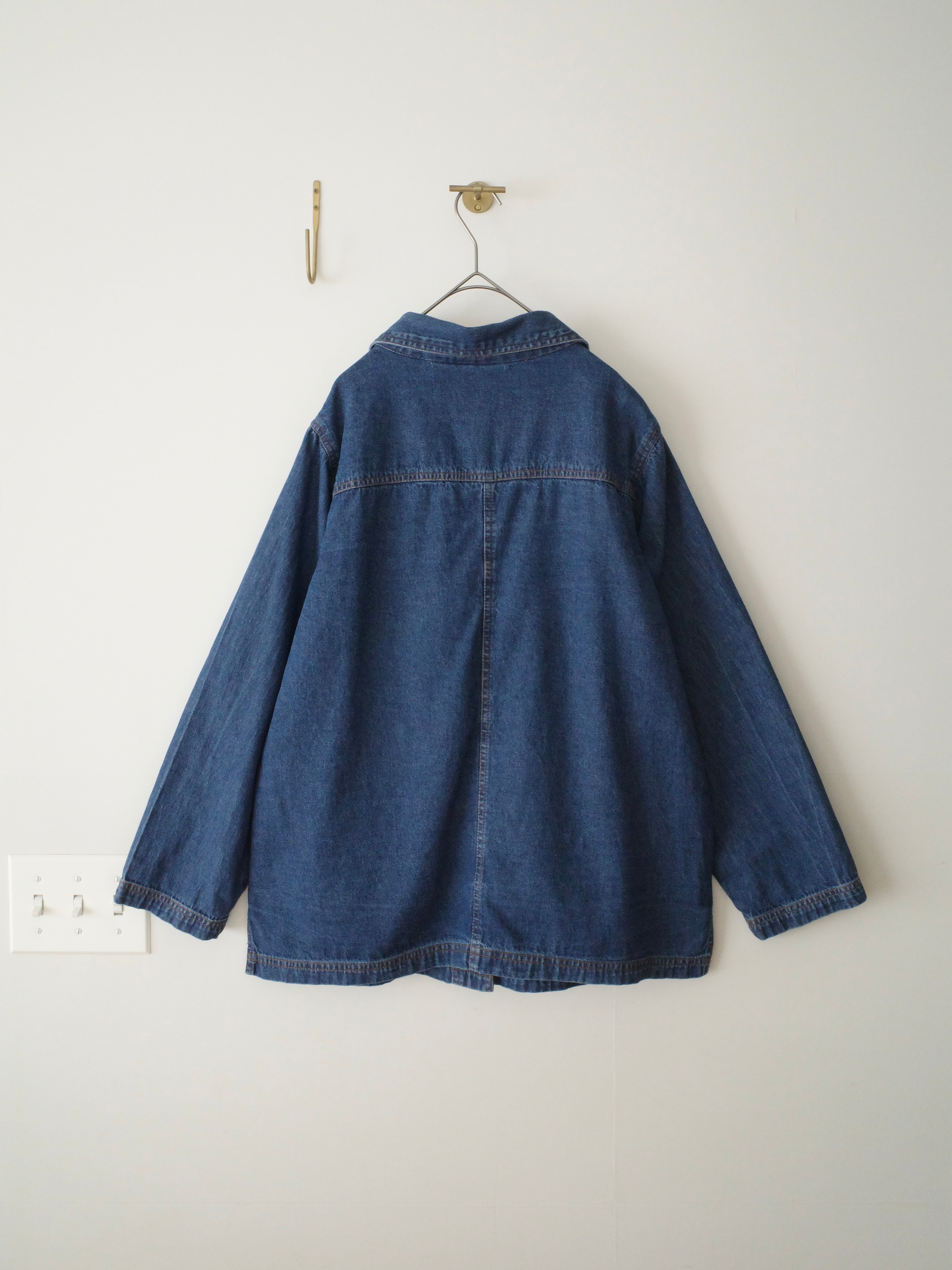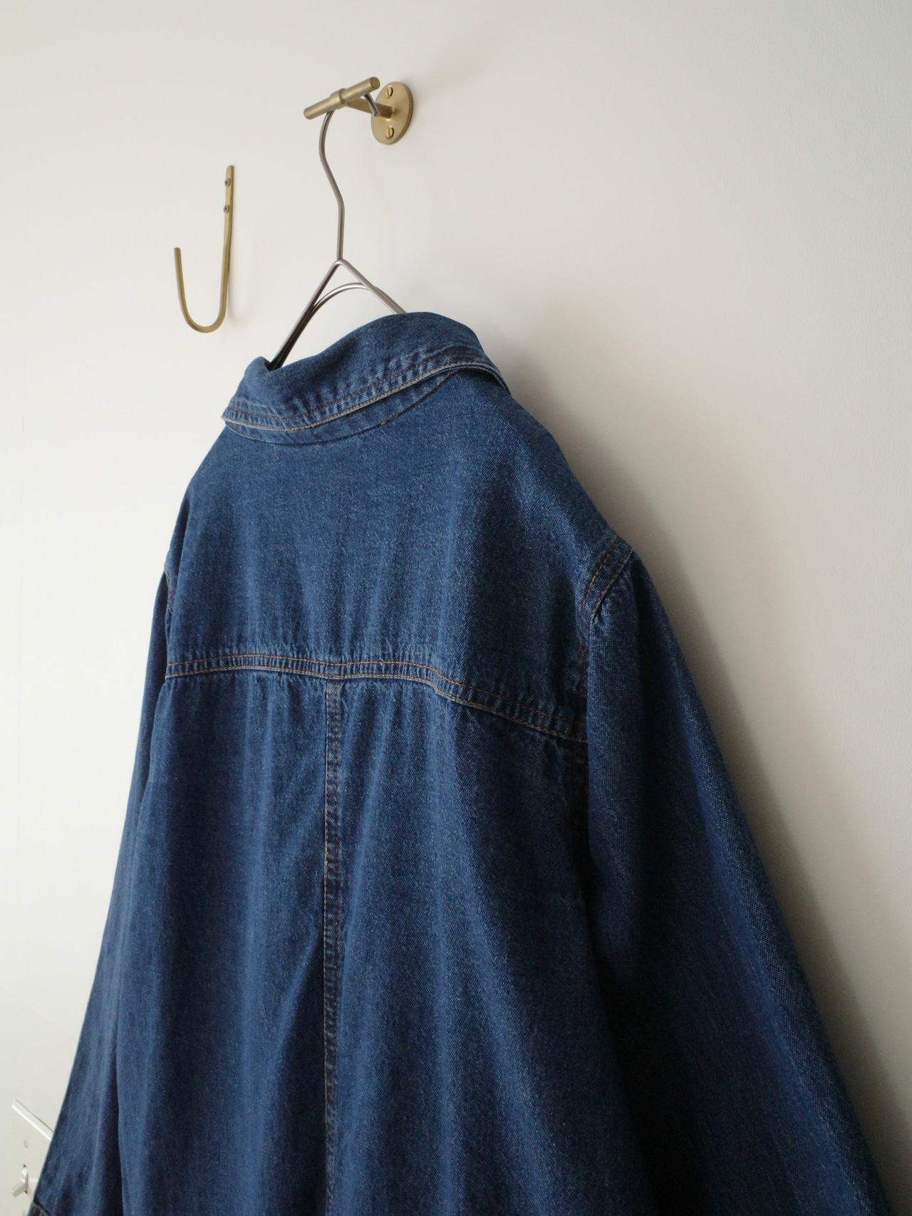 落ち着いたブルーの色味と、レギュラーシルエットで着回しのきくデニムジャケット。