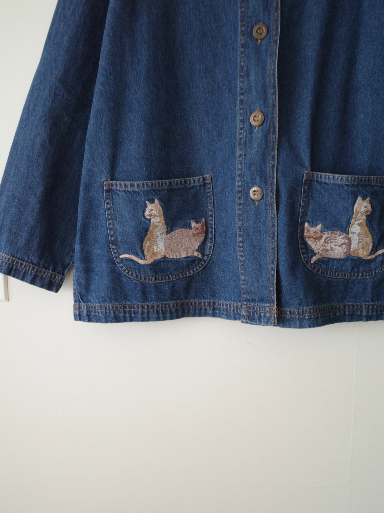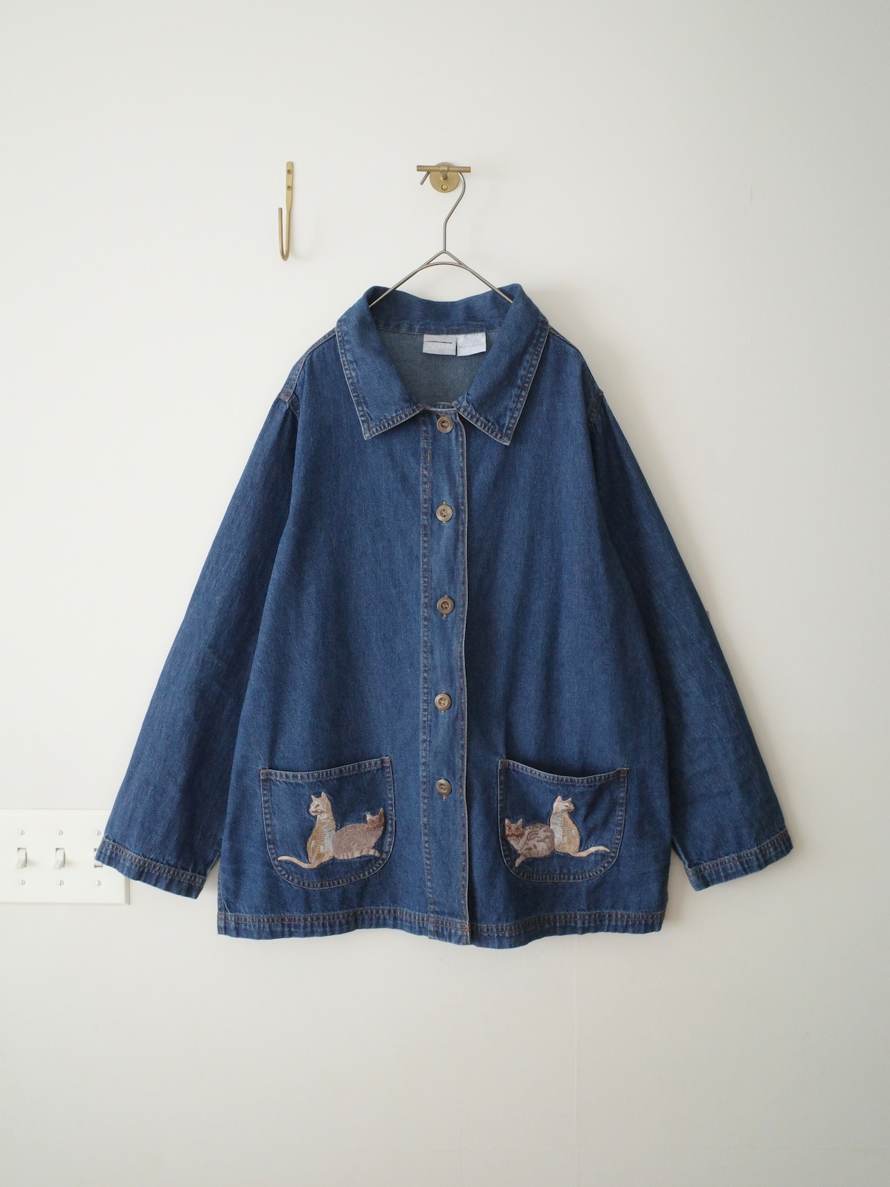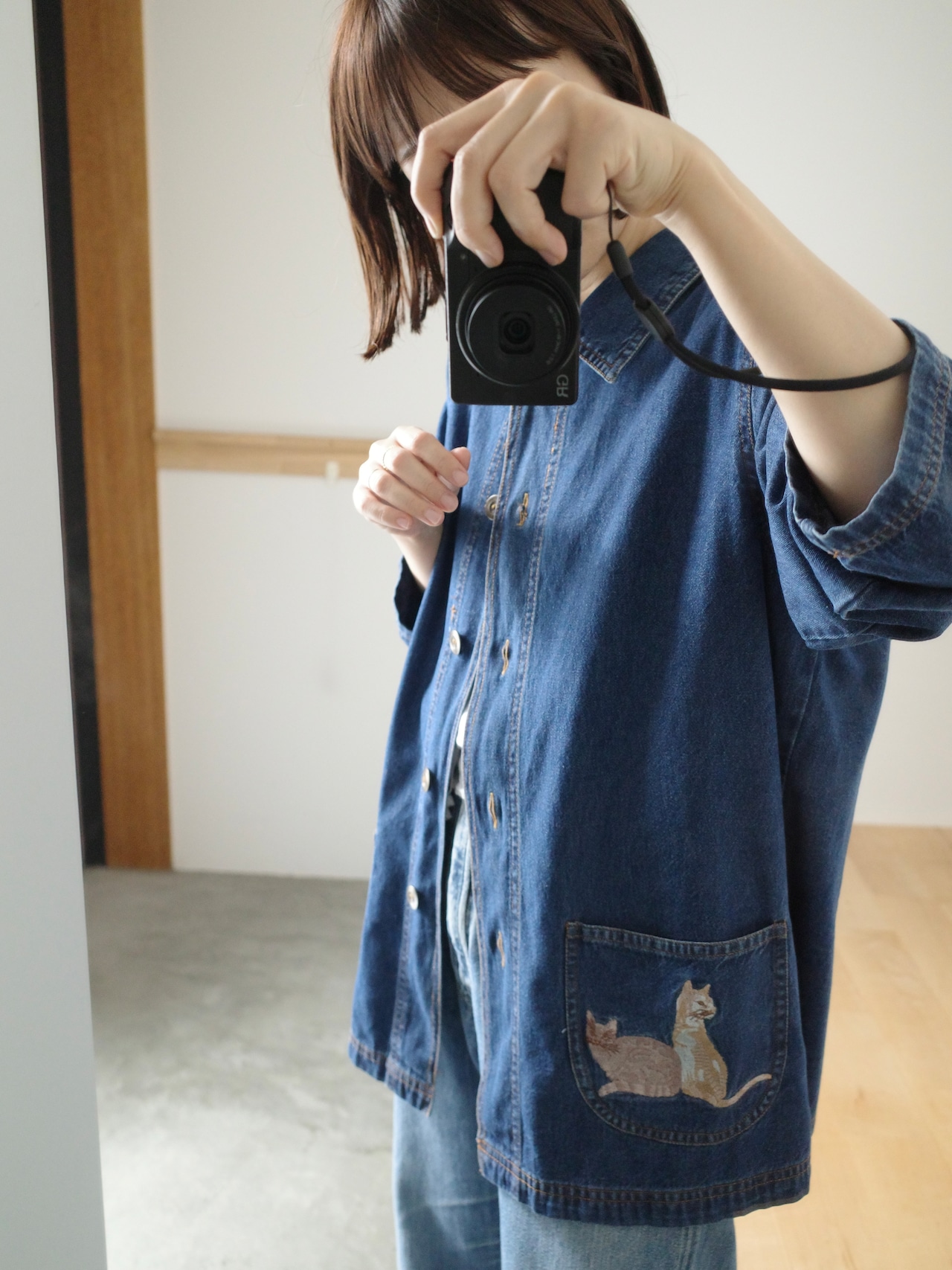 猫ちゃん刺繍もステッチもボタンもブラウン系で統一感もありです◎