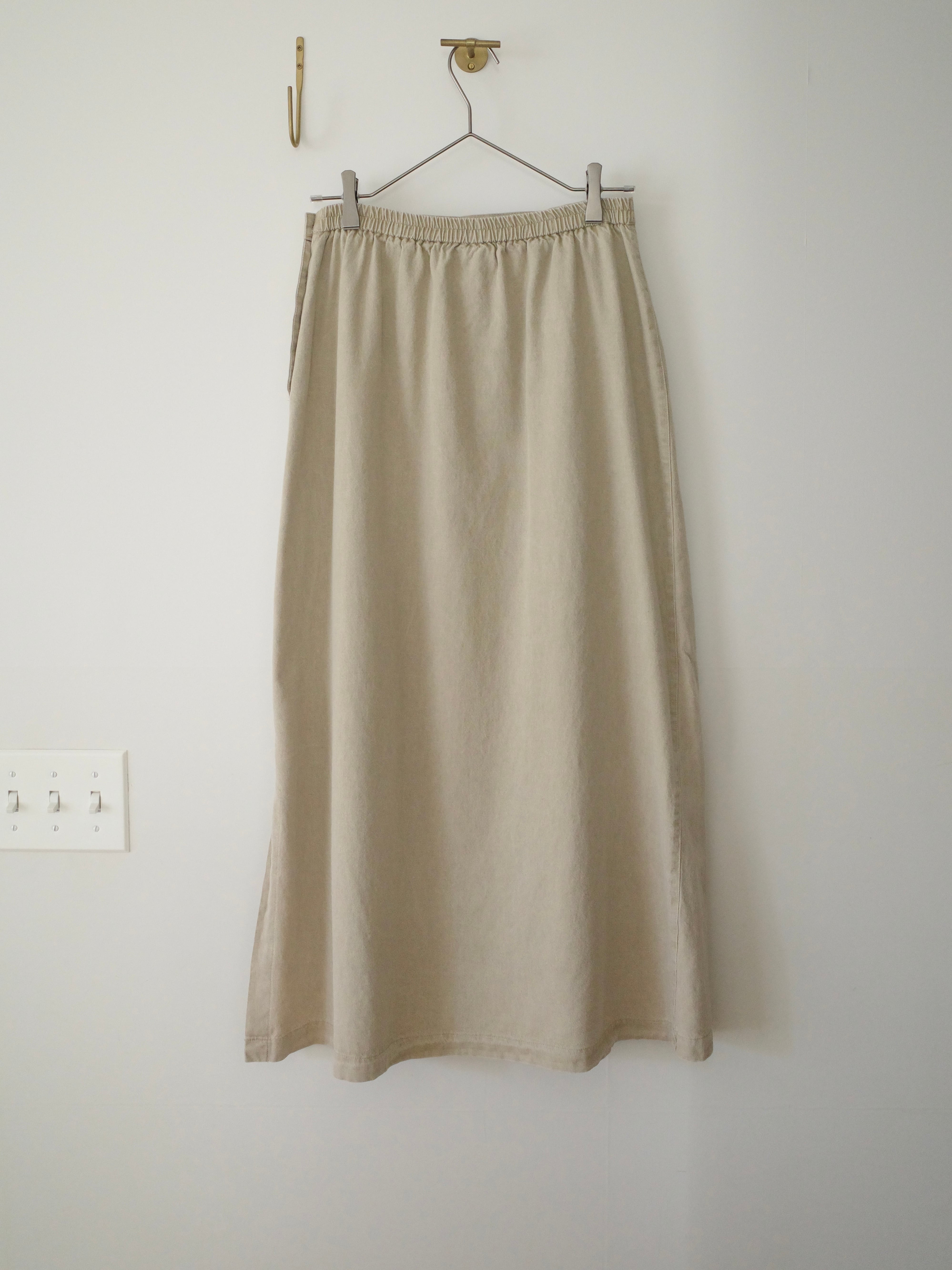 薄手のデニム素材のような風合いで雰囲気のあるコットンスカート。