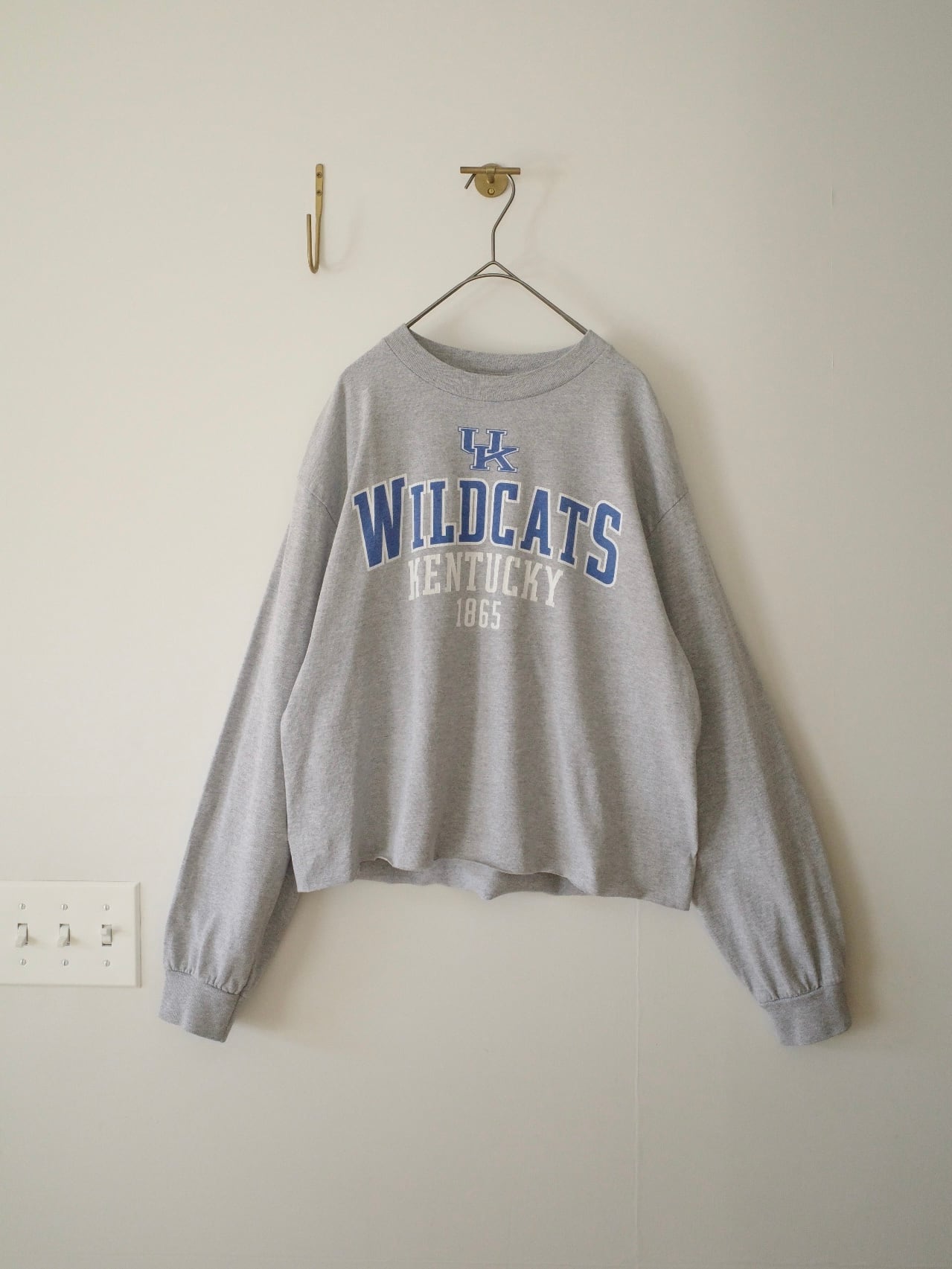 ケンタッキー大学のスポーツチームTシャツ。Mサイズ相当のロンTの丈をカットオフして、短丈に仕上げました。