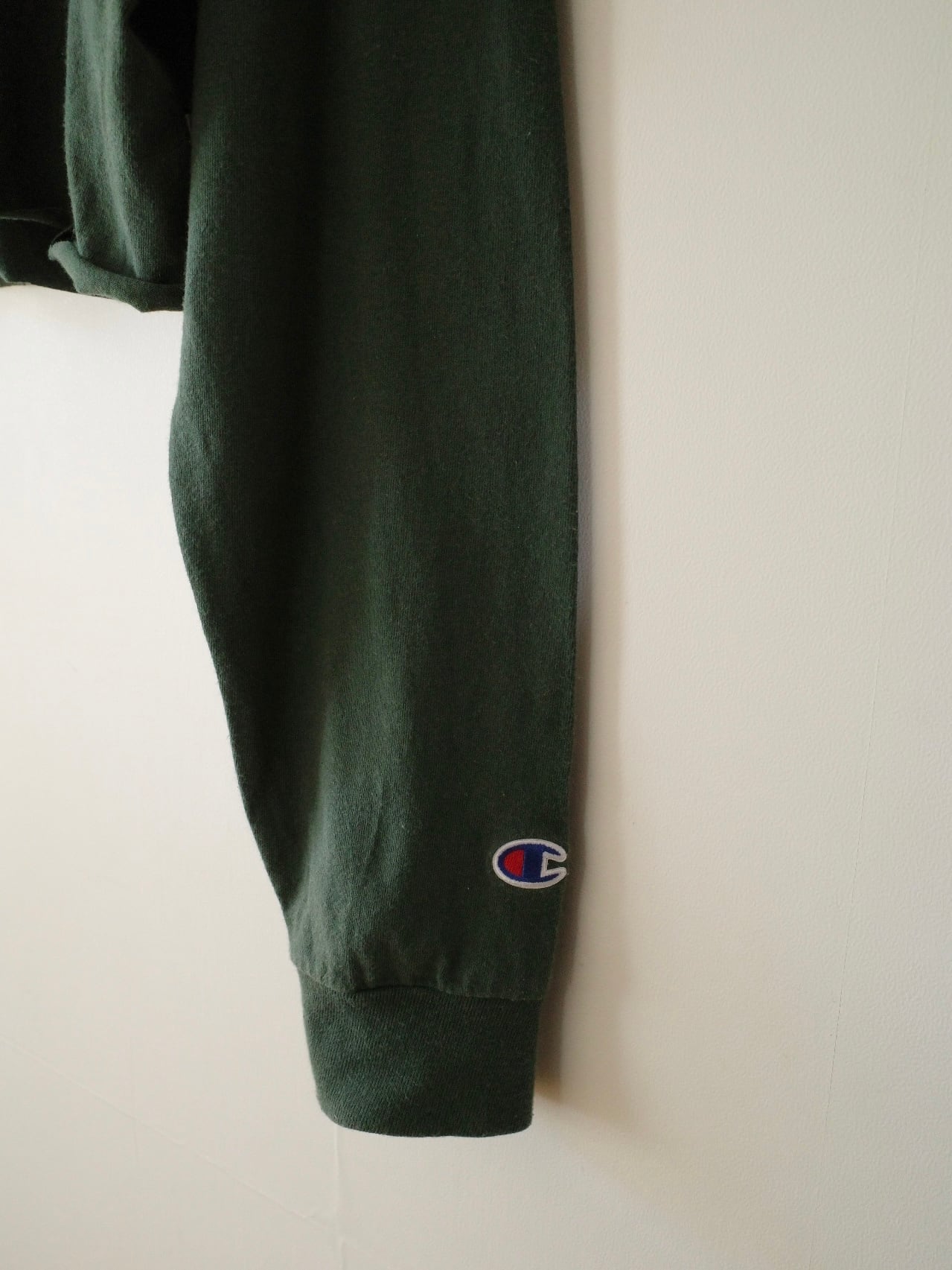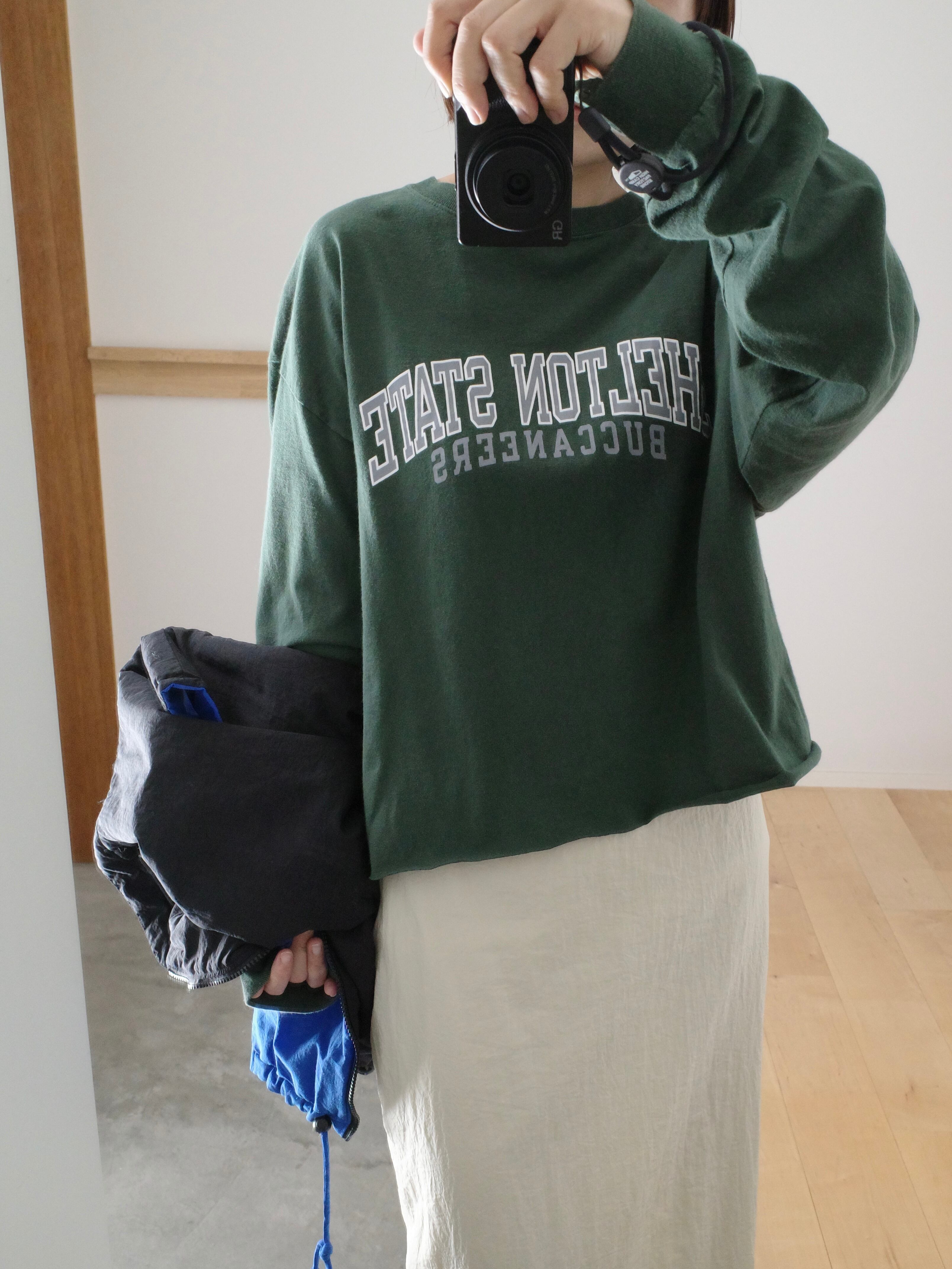 ゆったりサイズのロンTの丈をカットオフして、短丈に仕上げました。