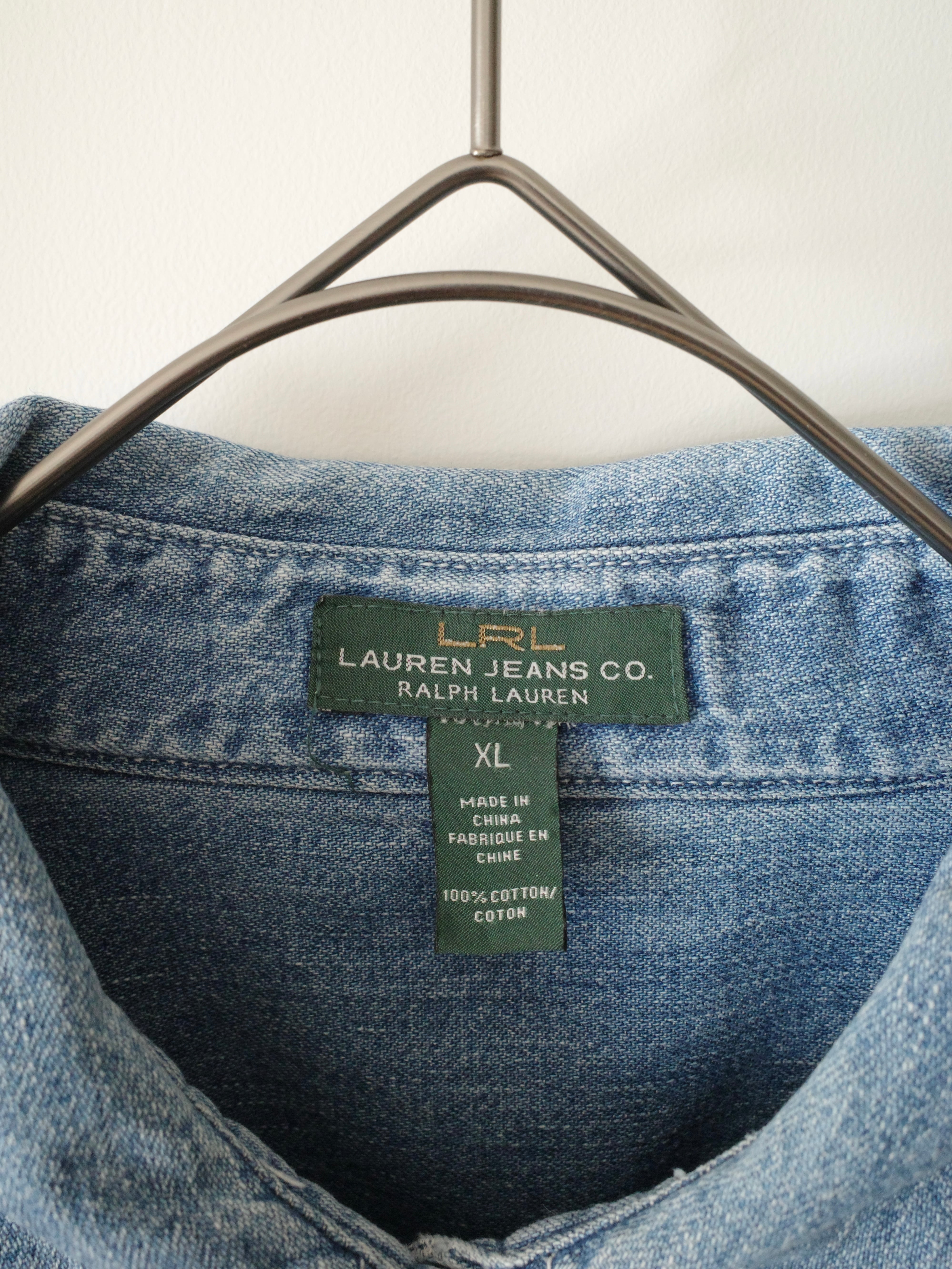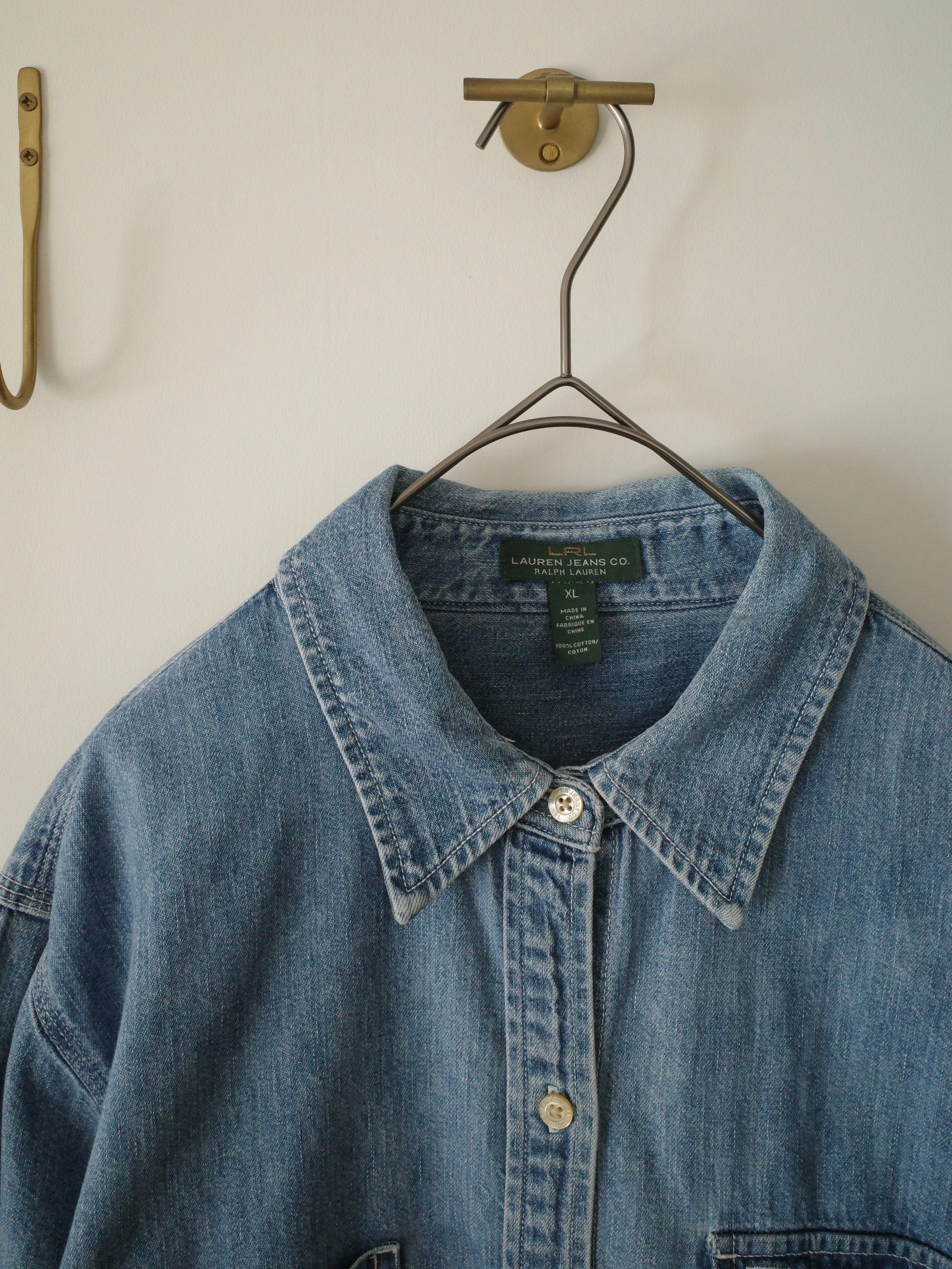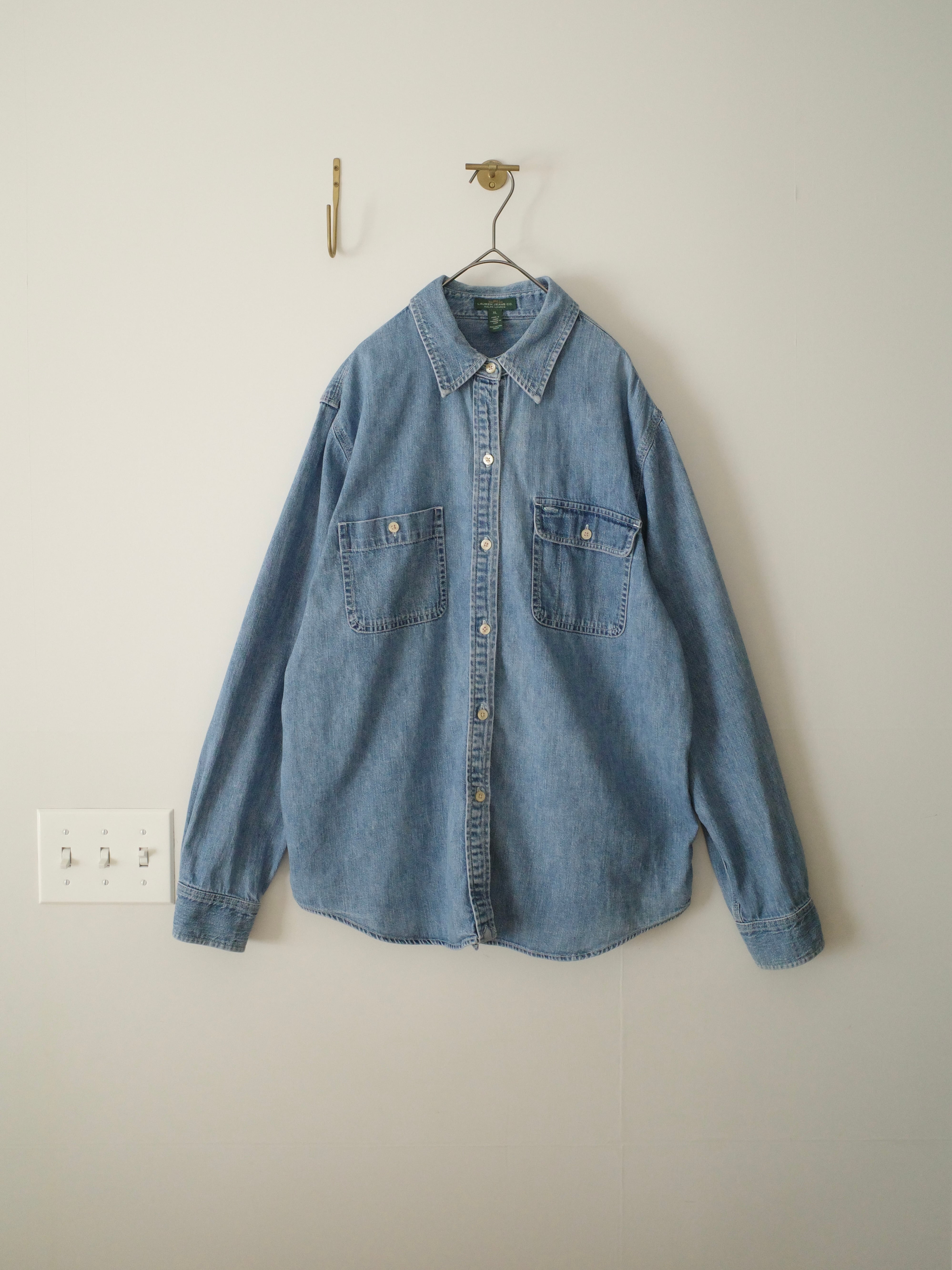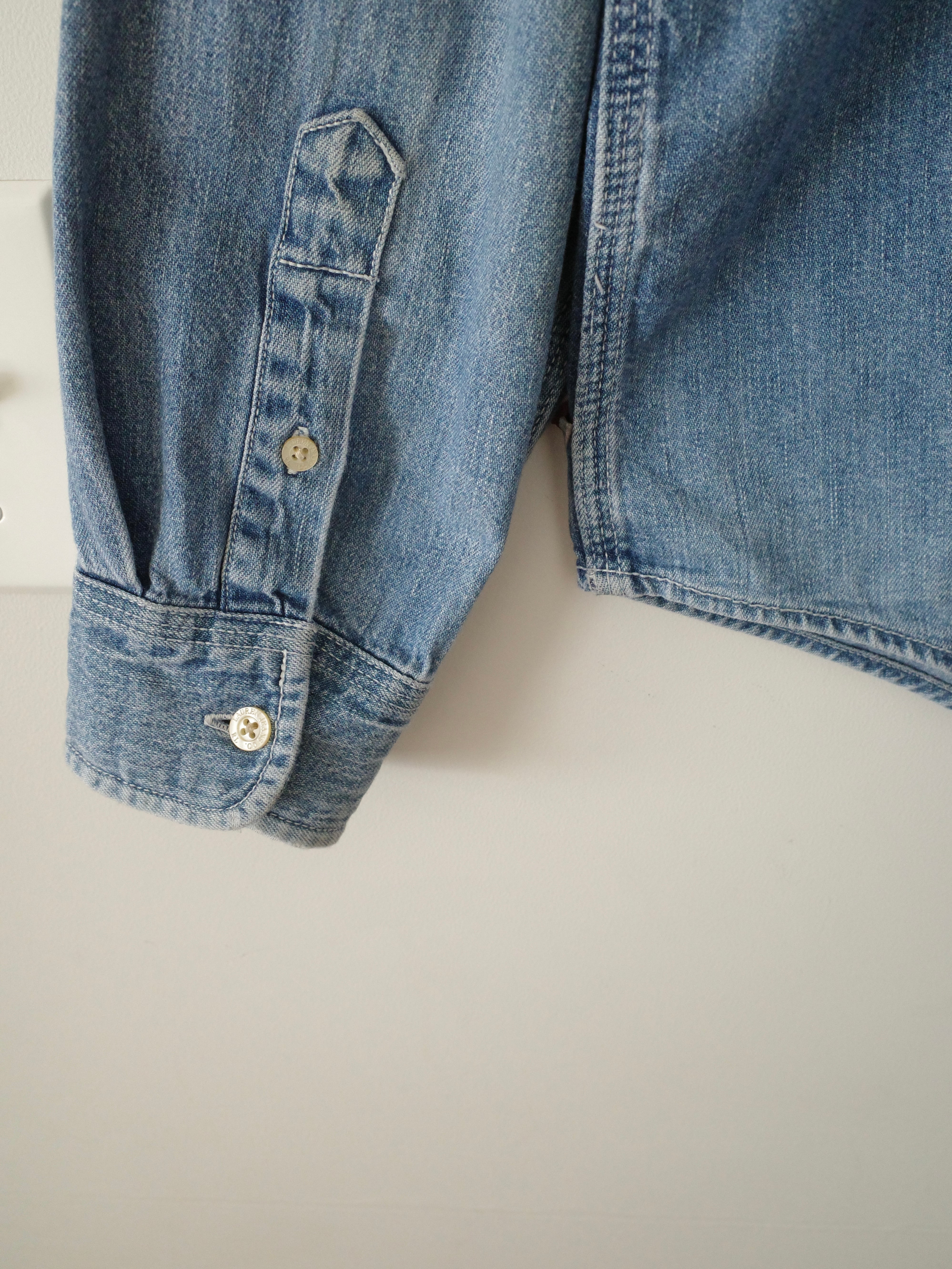 ラルフローレンのデニムラインから出ているシャツジャケット。普通のデニムシャツよりも厚手でカバーオールの様な感覚で着やすいです。