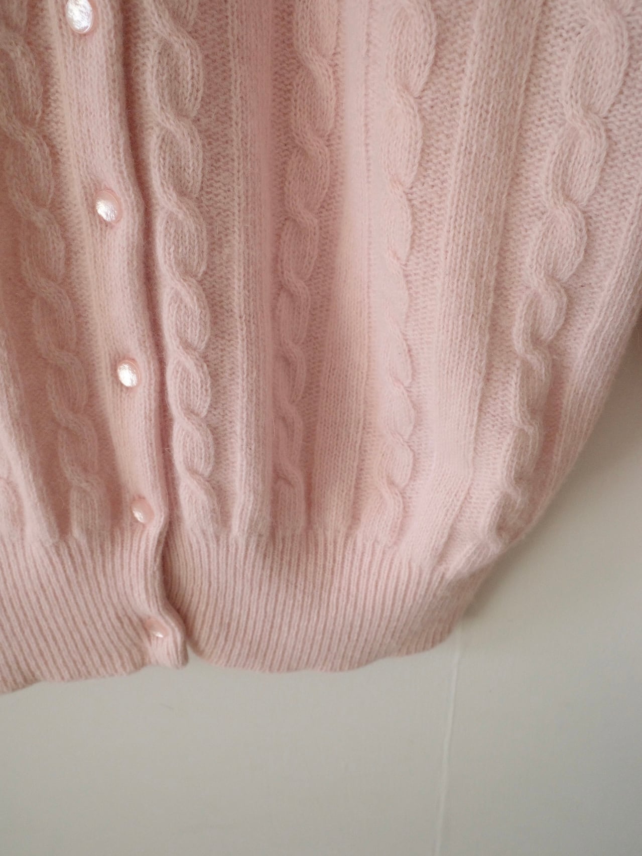もちもちふわふわなベビーピンクのケーブルニットカーデ。