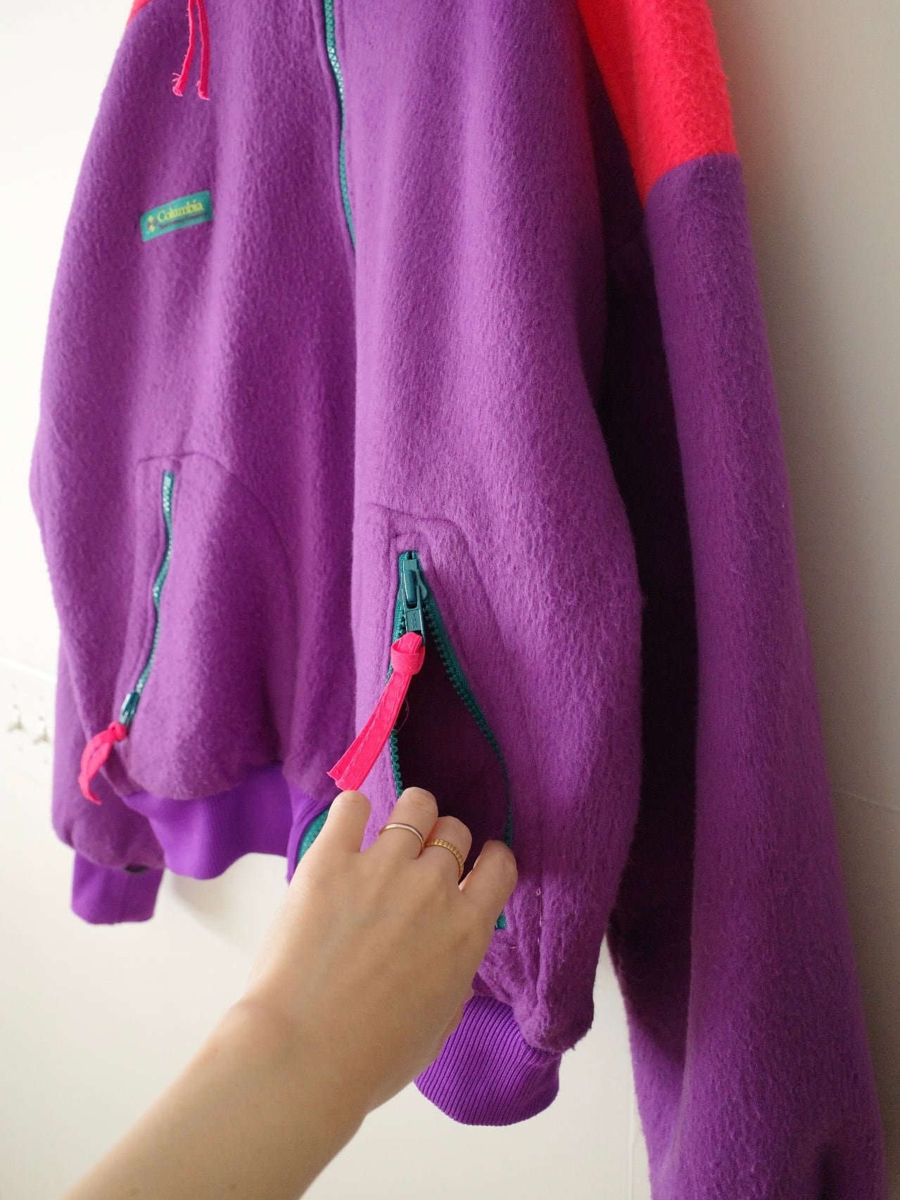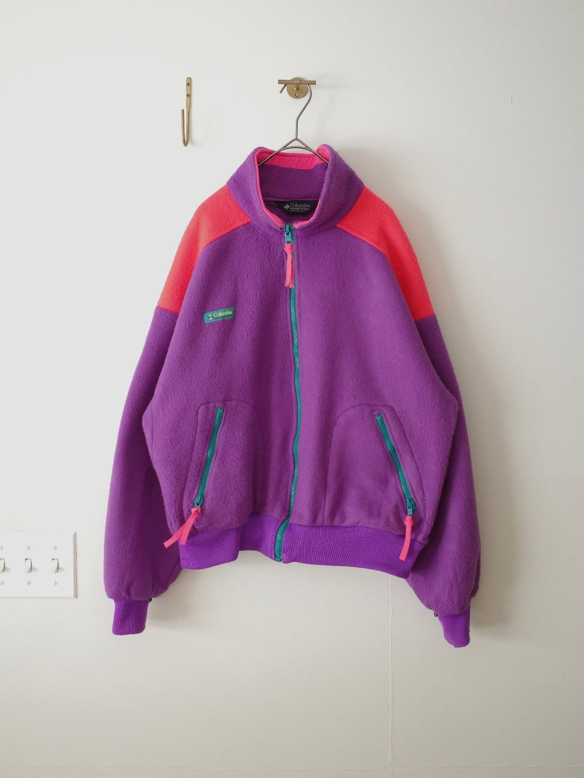 まさにUSAヴィンテージな雰囲気。パープル×ピンク×グリーン配色が可愛いコロンビアジャケットです。