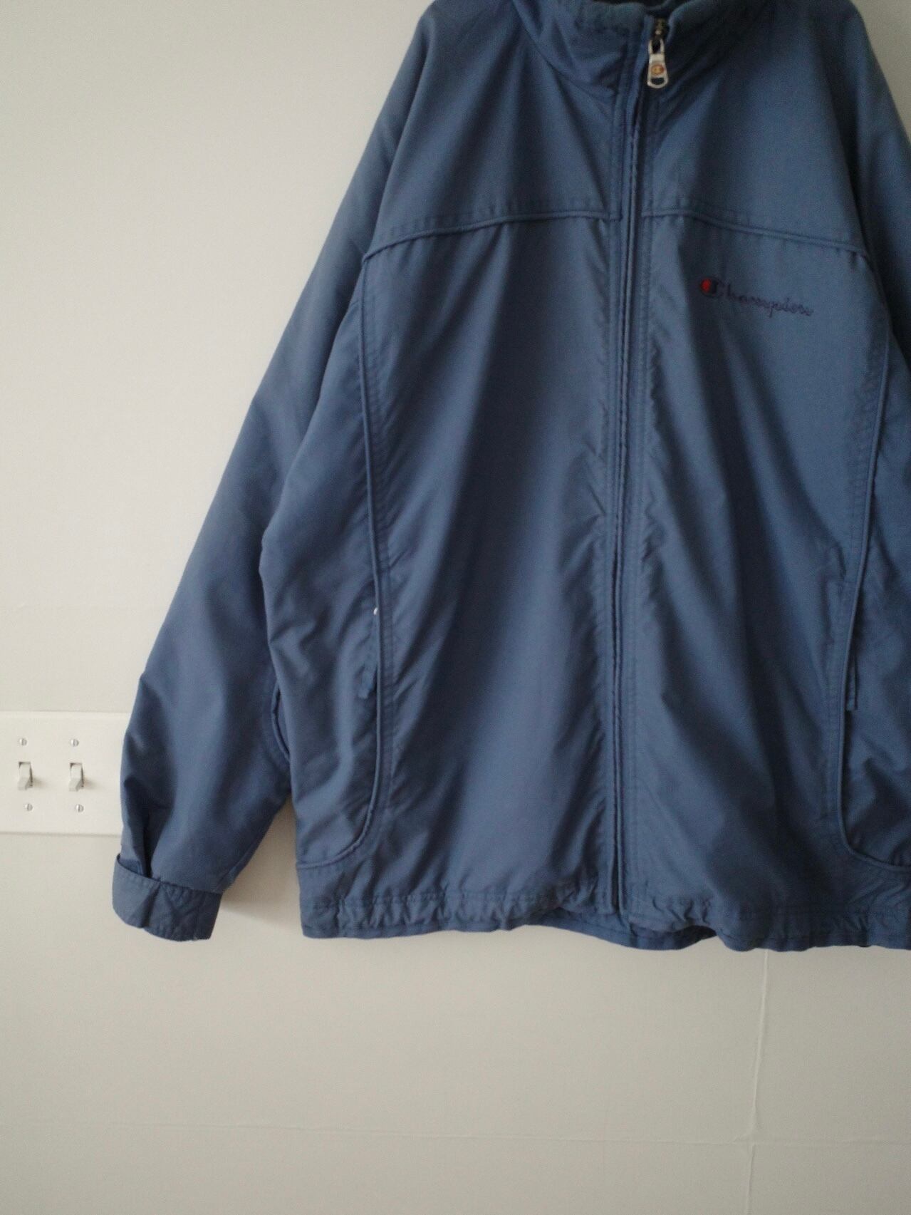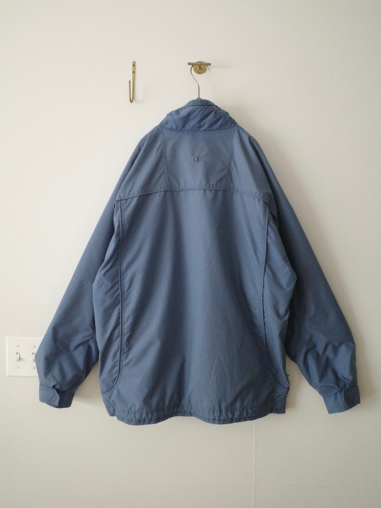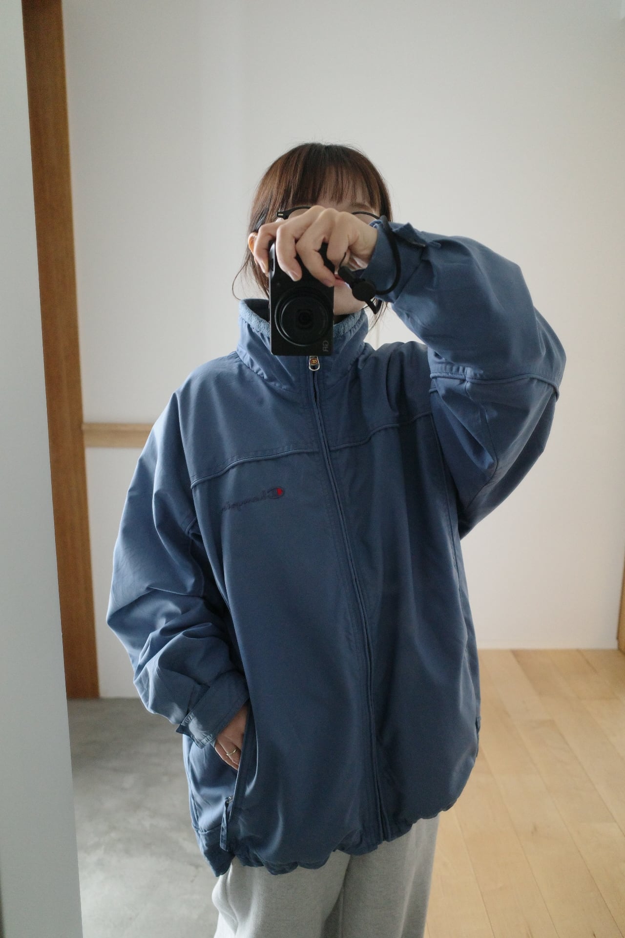 グレーがかったシアーなブルーが印象的なシェルジャケット。とにかく色味に一目惚れです。