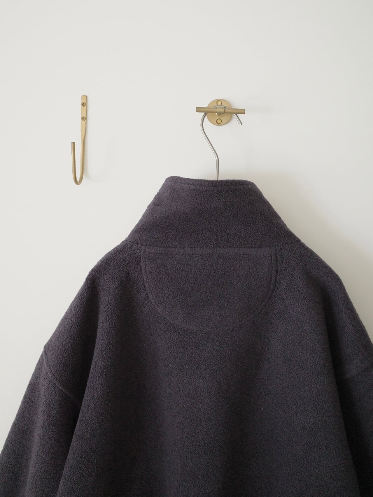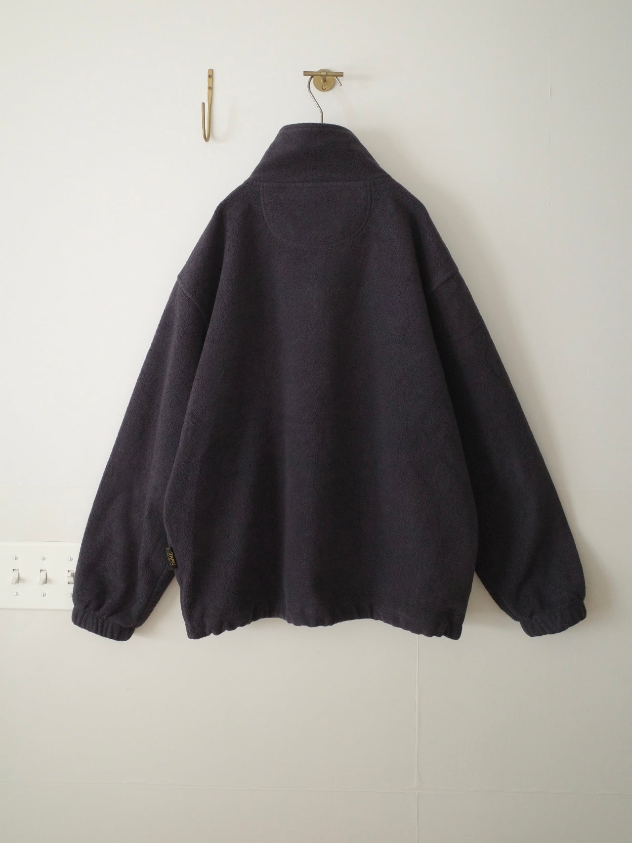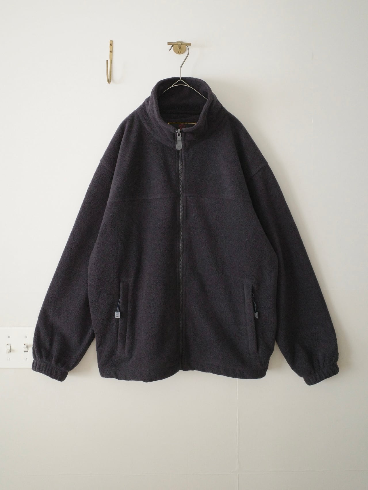 炭黒のように見える濃紺の肉厚フリースジャケット。