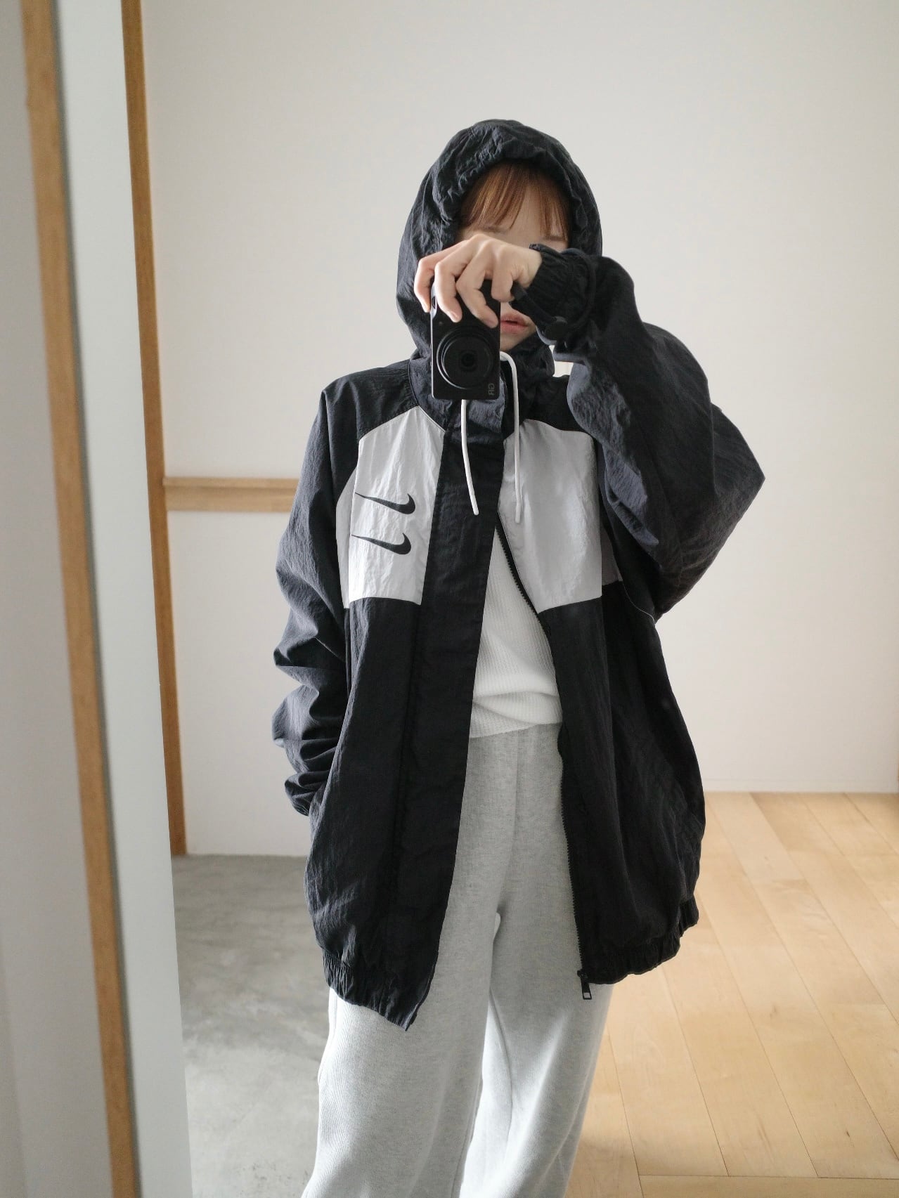 ナイキ好きの中でも人気のダブルスウッシュ。胸元に大胆に2つ刺繍のスウッシュが入っているのが特徴で、実はフードの下にも1つ隠れています☺︎