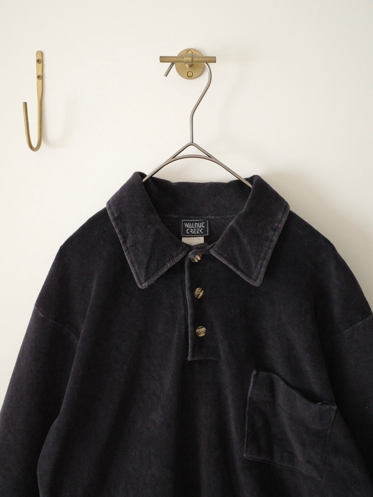 べっこうボタンと、大きめ襟が可愛いベロアポロ。