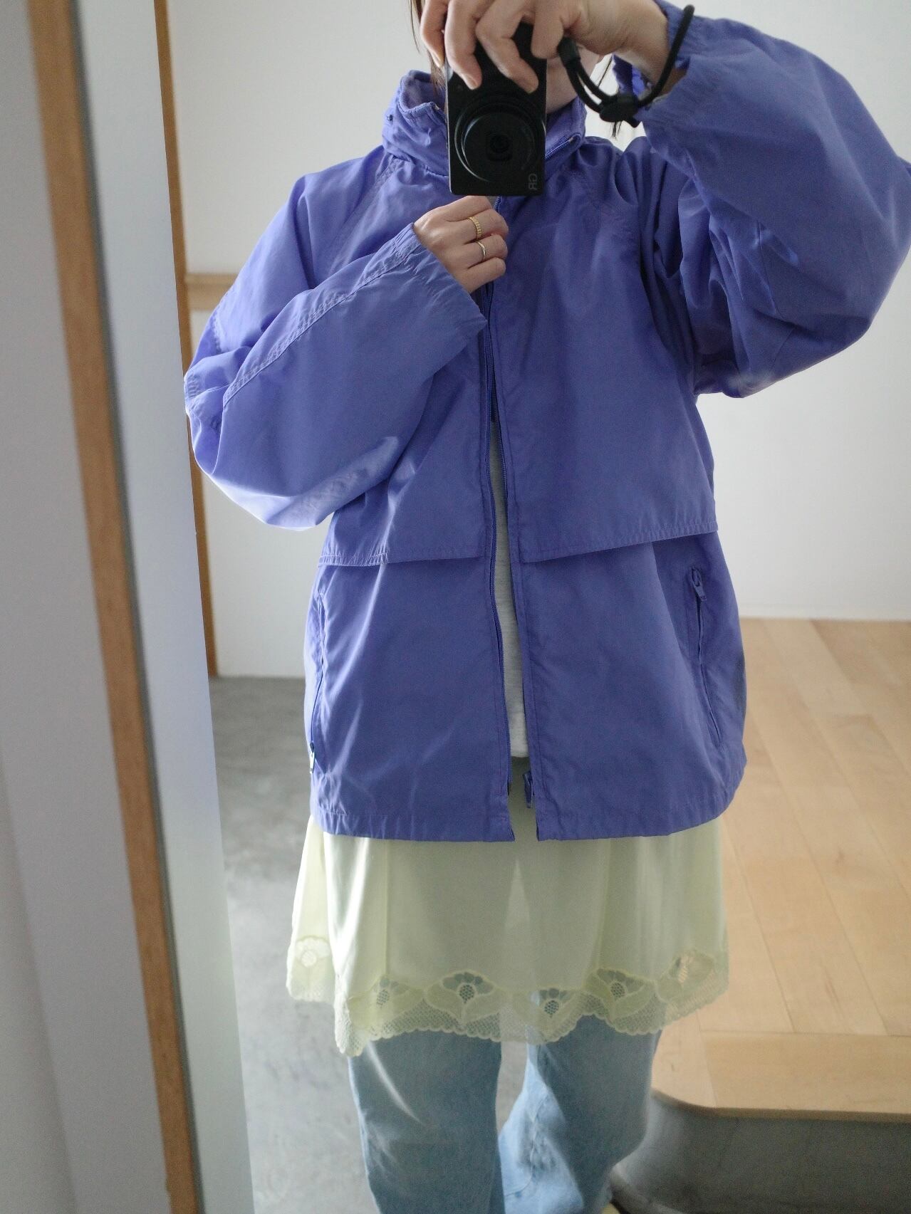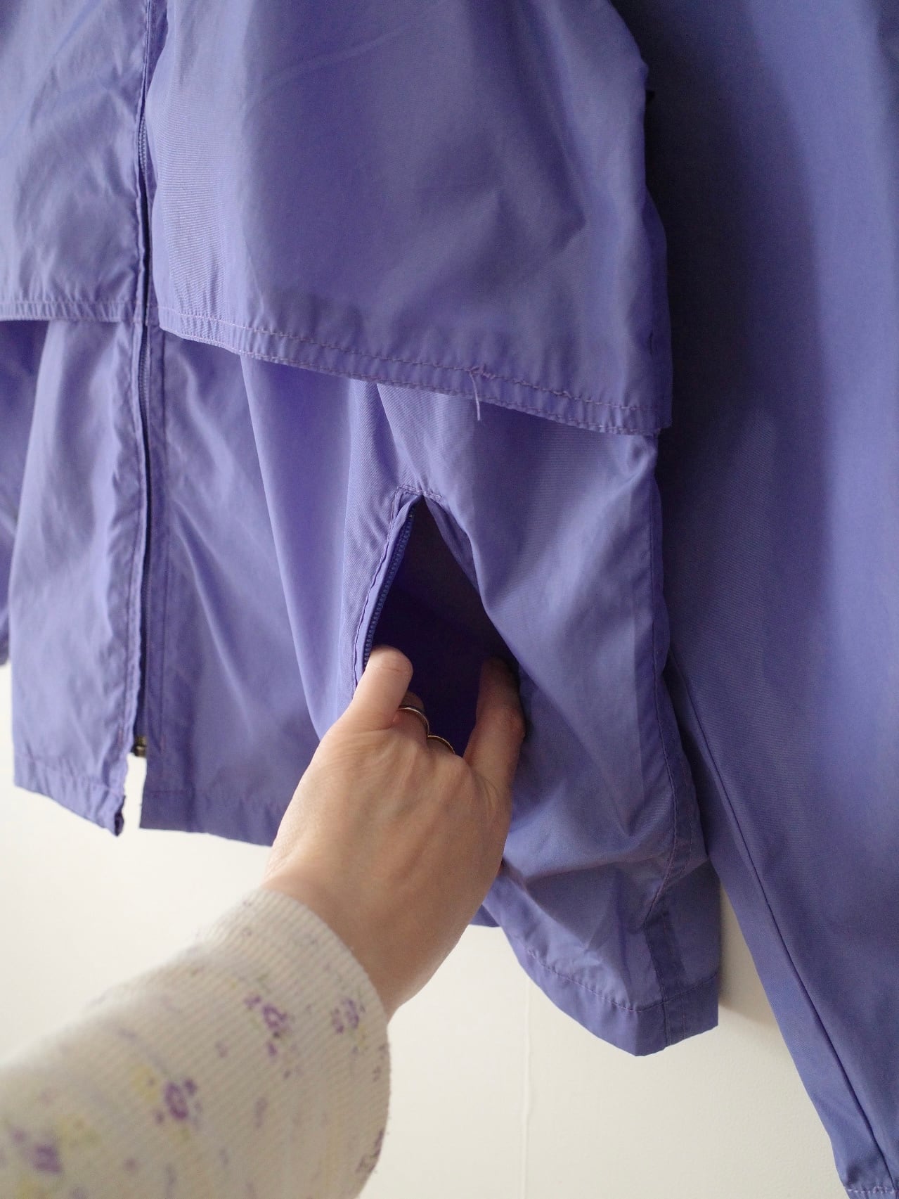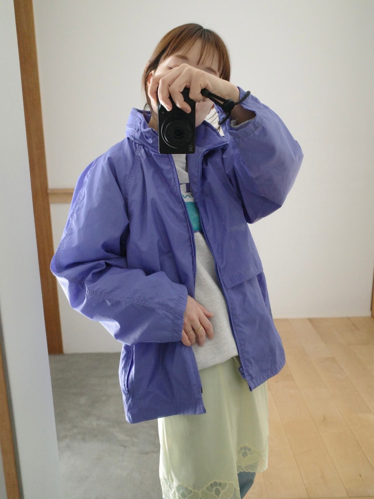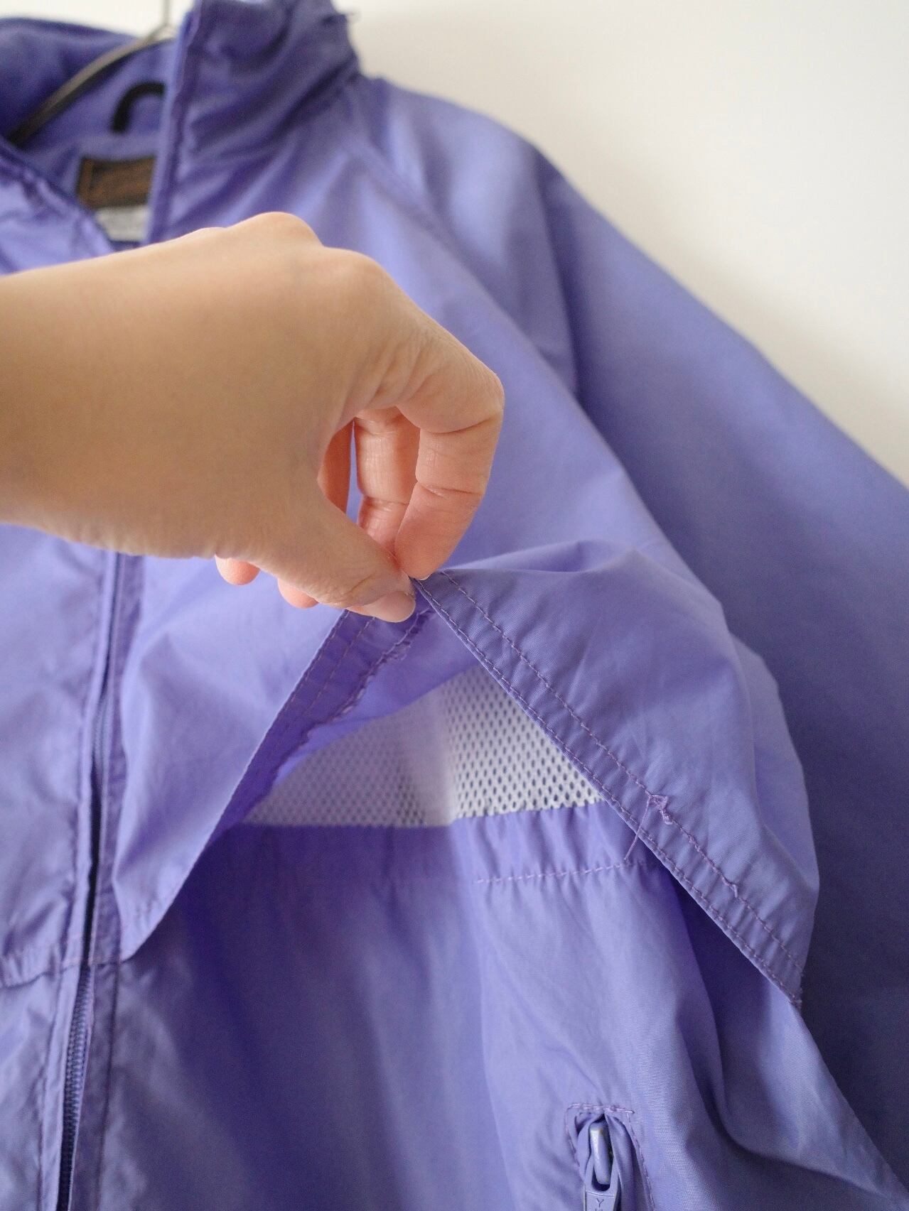 パープルの色味が最高なシェルジャケット。
