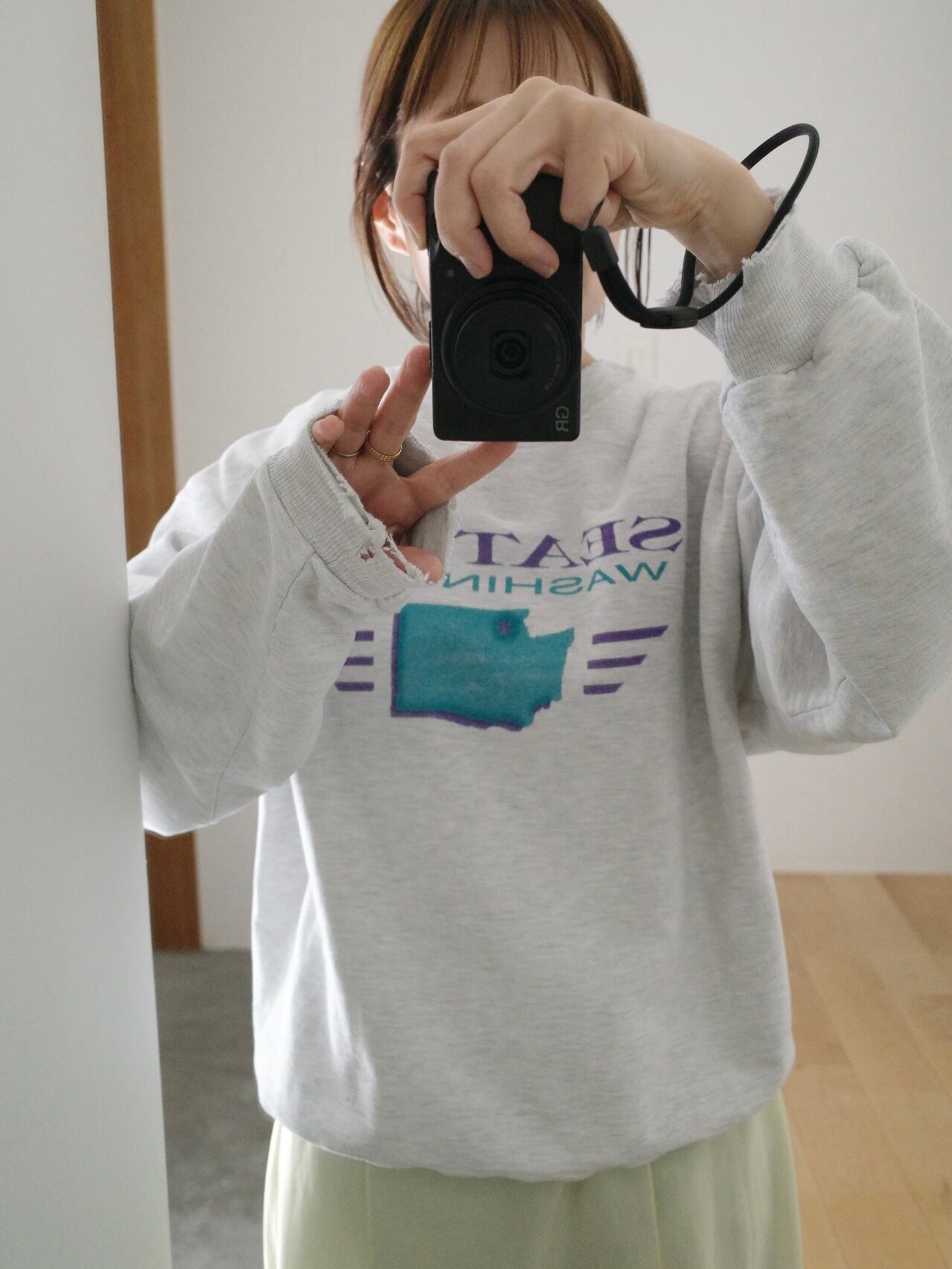 絶妙なボロ具合が可愛いシアトルロゴのスウェット。作ろうと思っても、こんな良い感じのボロ感はなかなか出せません☺︎