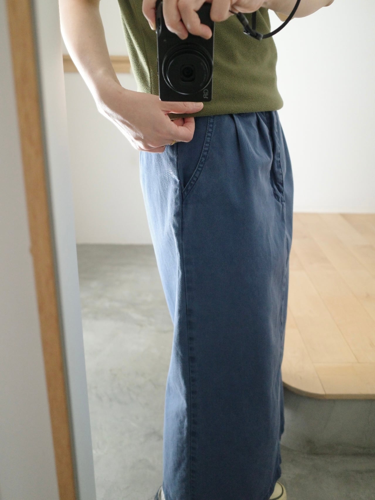コットンツイルなのでデニムよりも少し落ち着いて見え、カジュアルすぎない雰囲気で着られますよ◎