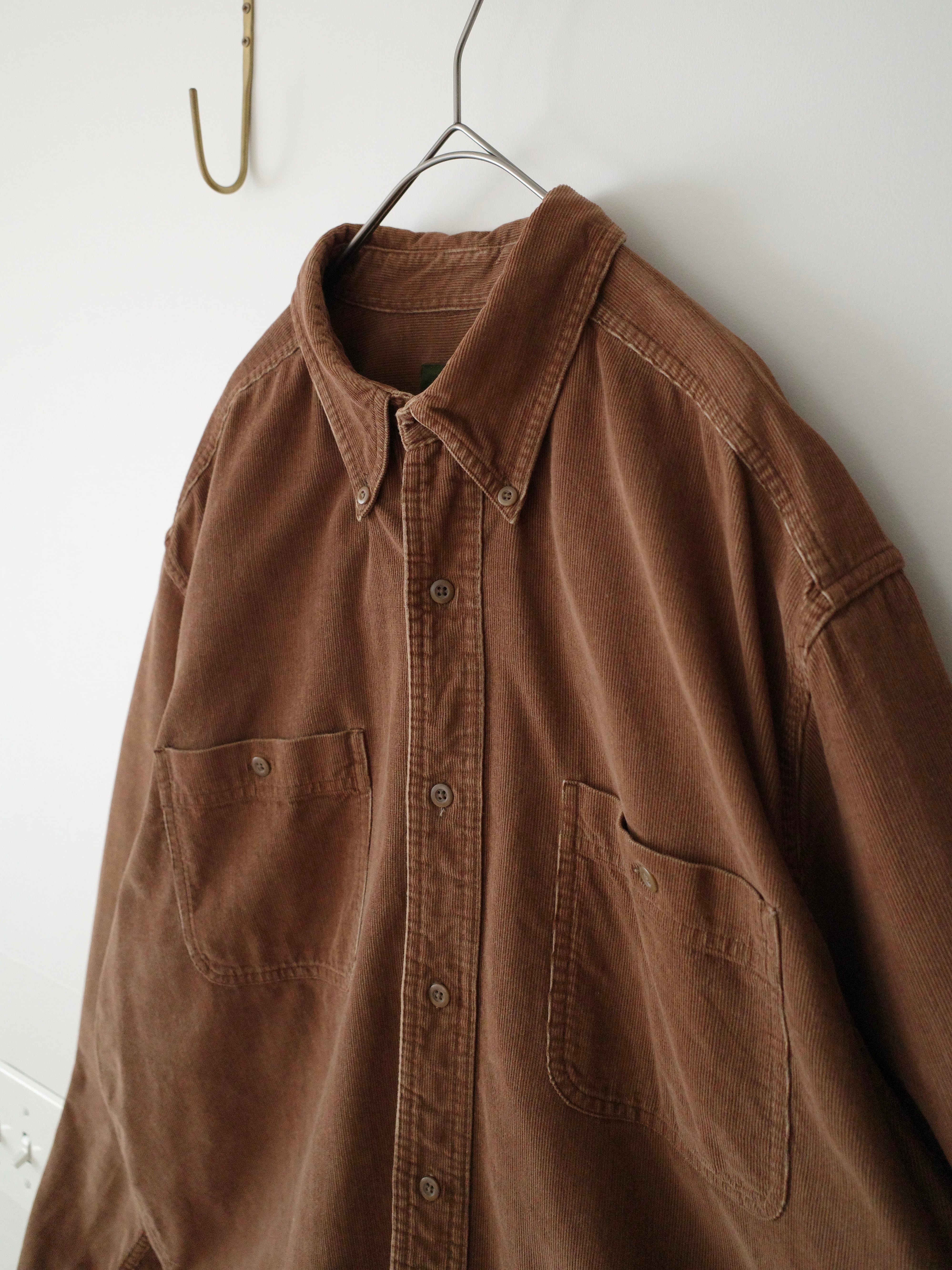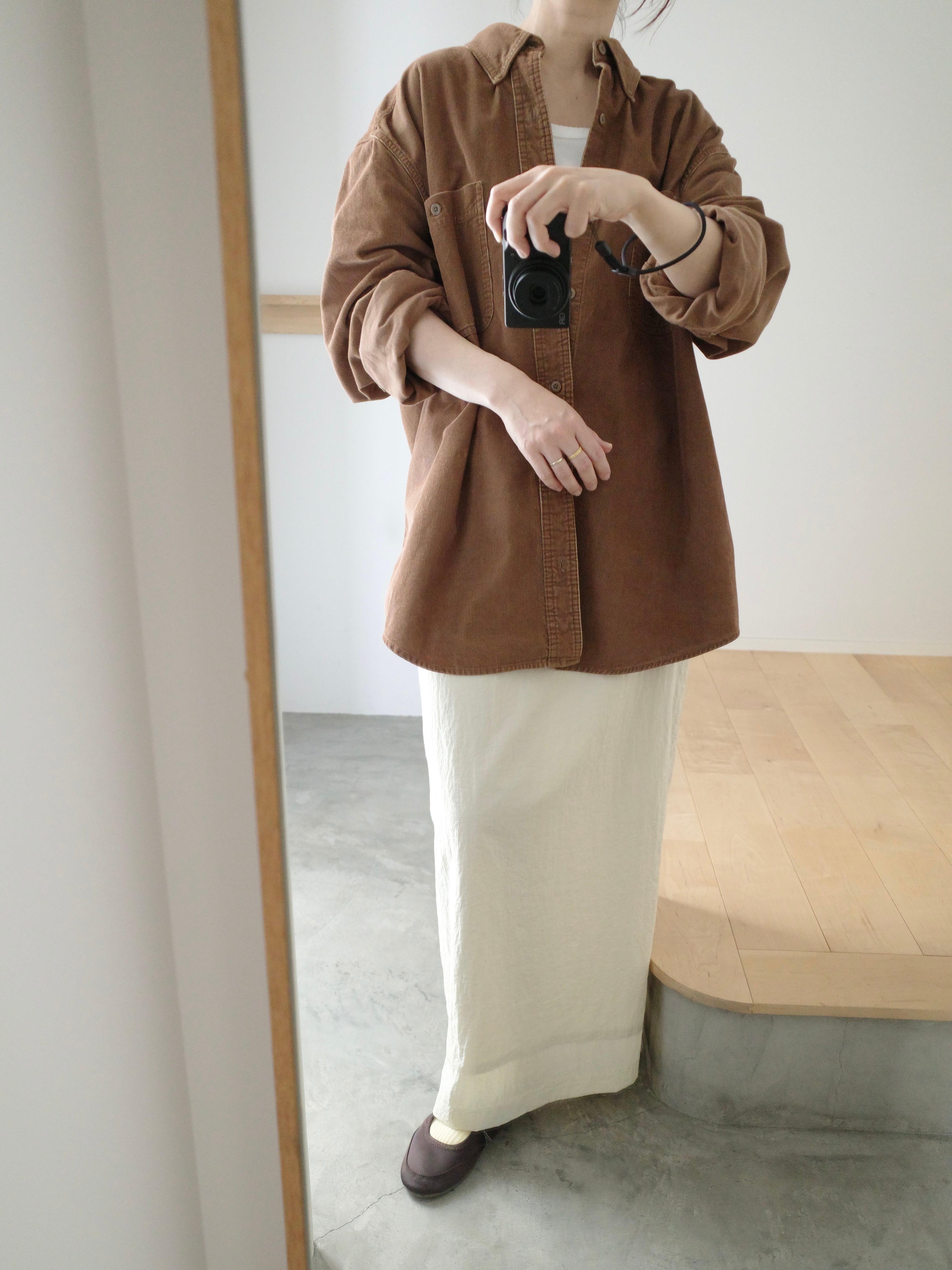 くまさんみたいなブラウンが可愛いコーデュロイシャツ。