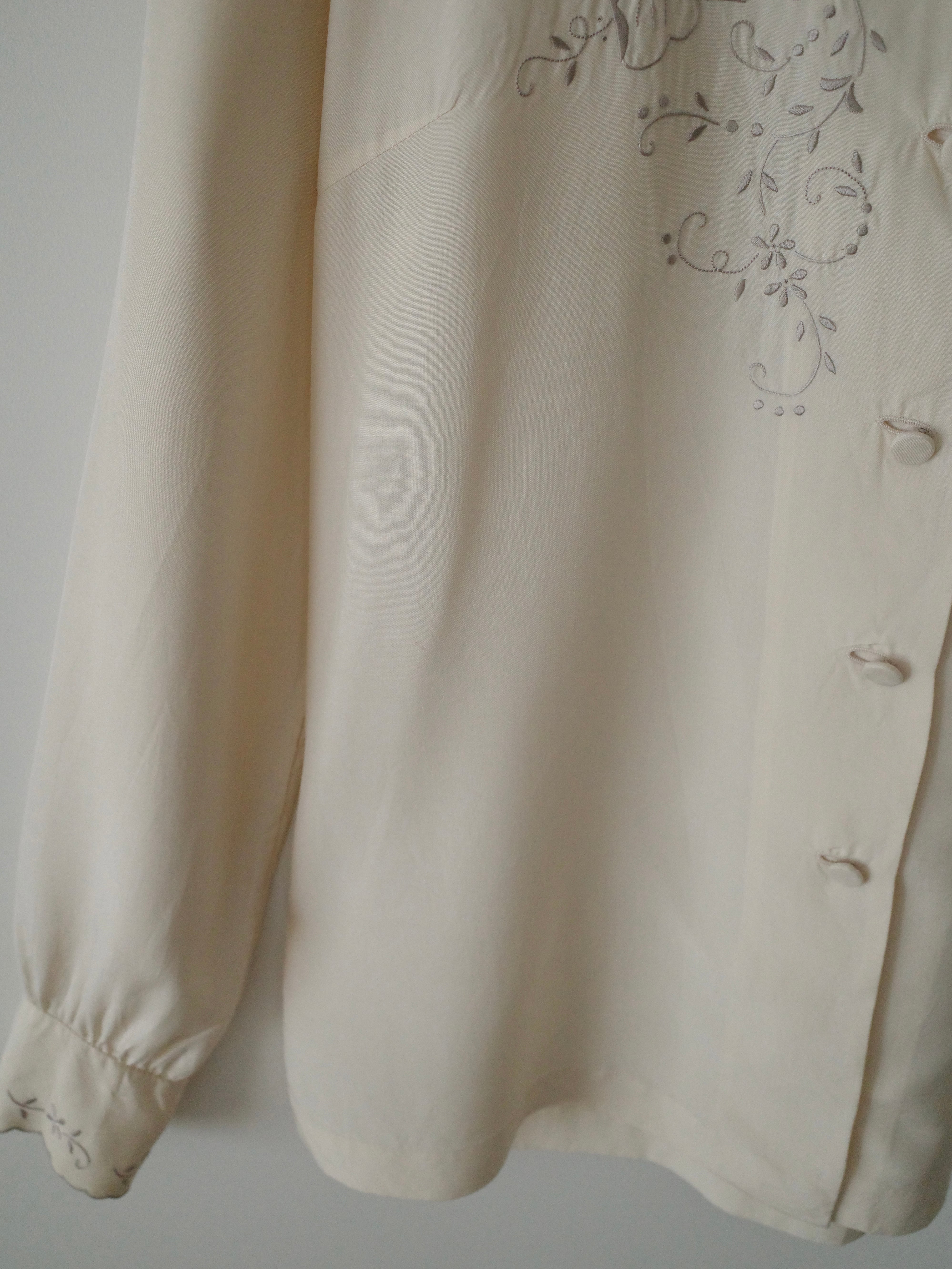 クリームカラーと手刺繍の柔らかな雰囲気が素敵なシルクブラウス。