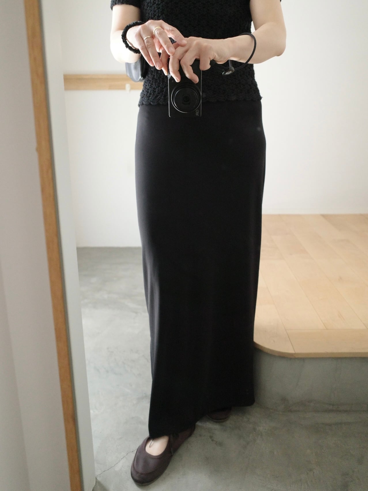 全体的にストレッチが効く素材でタイトな作りですが、程よい落ち感で体のラインを拾いすぎないのが嬉しいポイントです◎