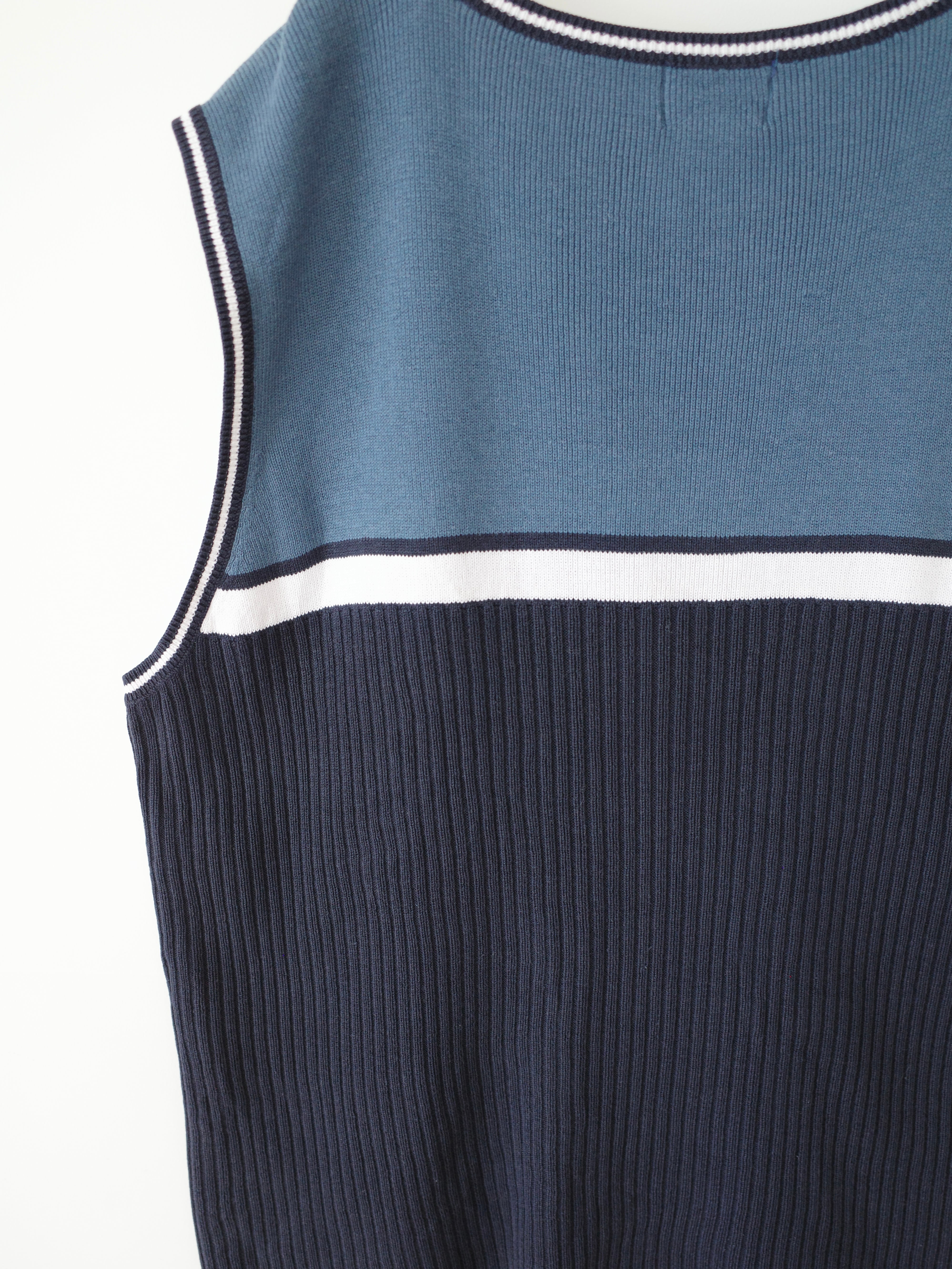 90〜00'sのスポーティな雰囲気が可愛いスクールベスト。ポリエステルコットンのリブ素材なので、さらっとした肌触りのサマーニットです♪