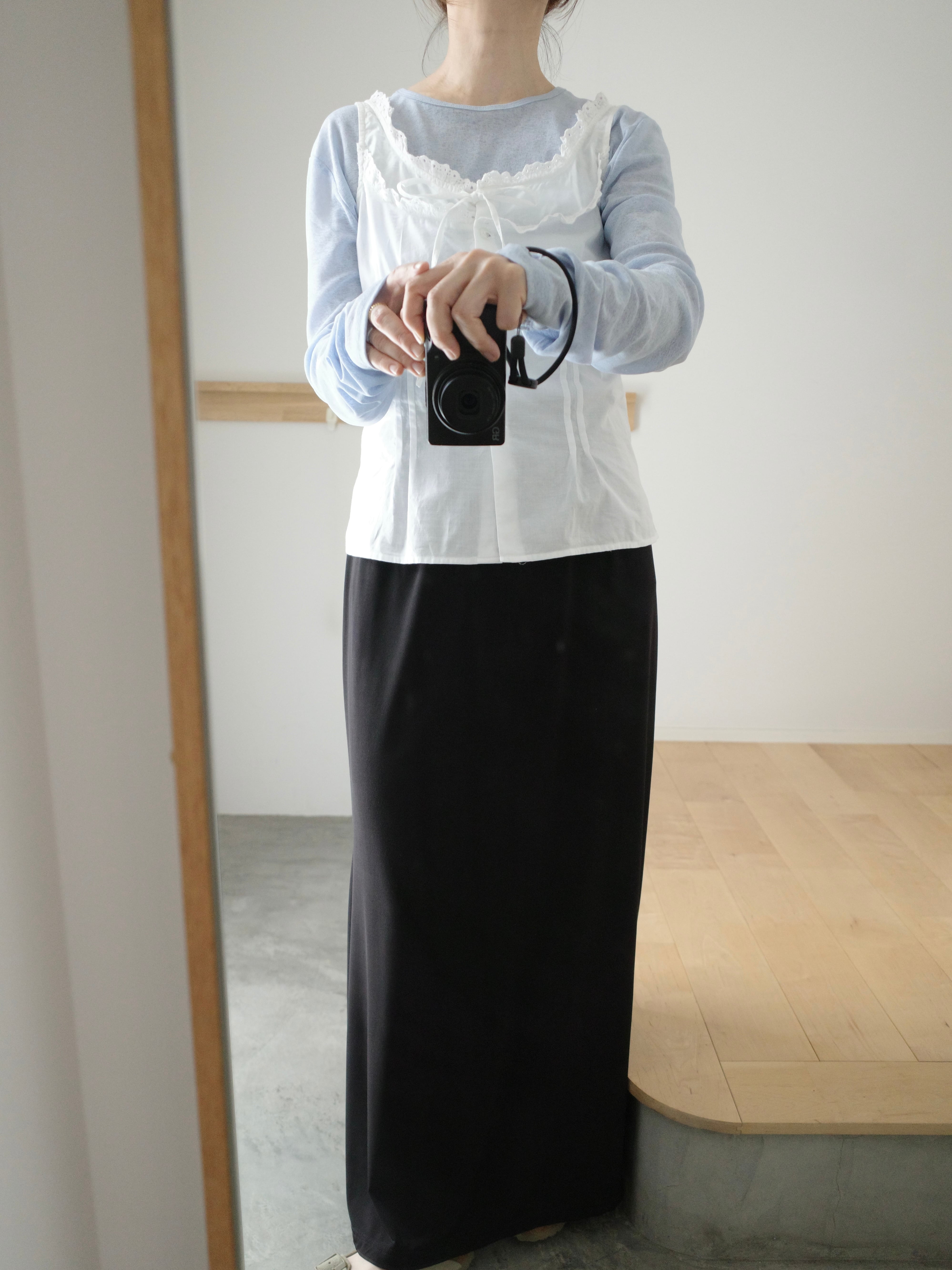 前ボタンを全開でリボンだけ結んで羽織っぽく着たり、コーデの幅広がりますね☺︎