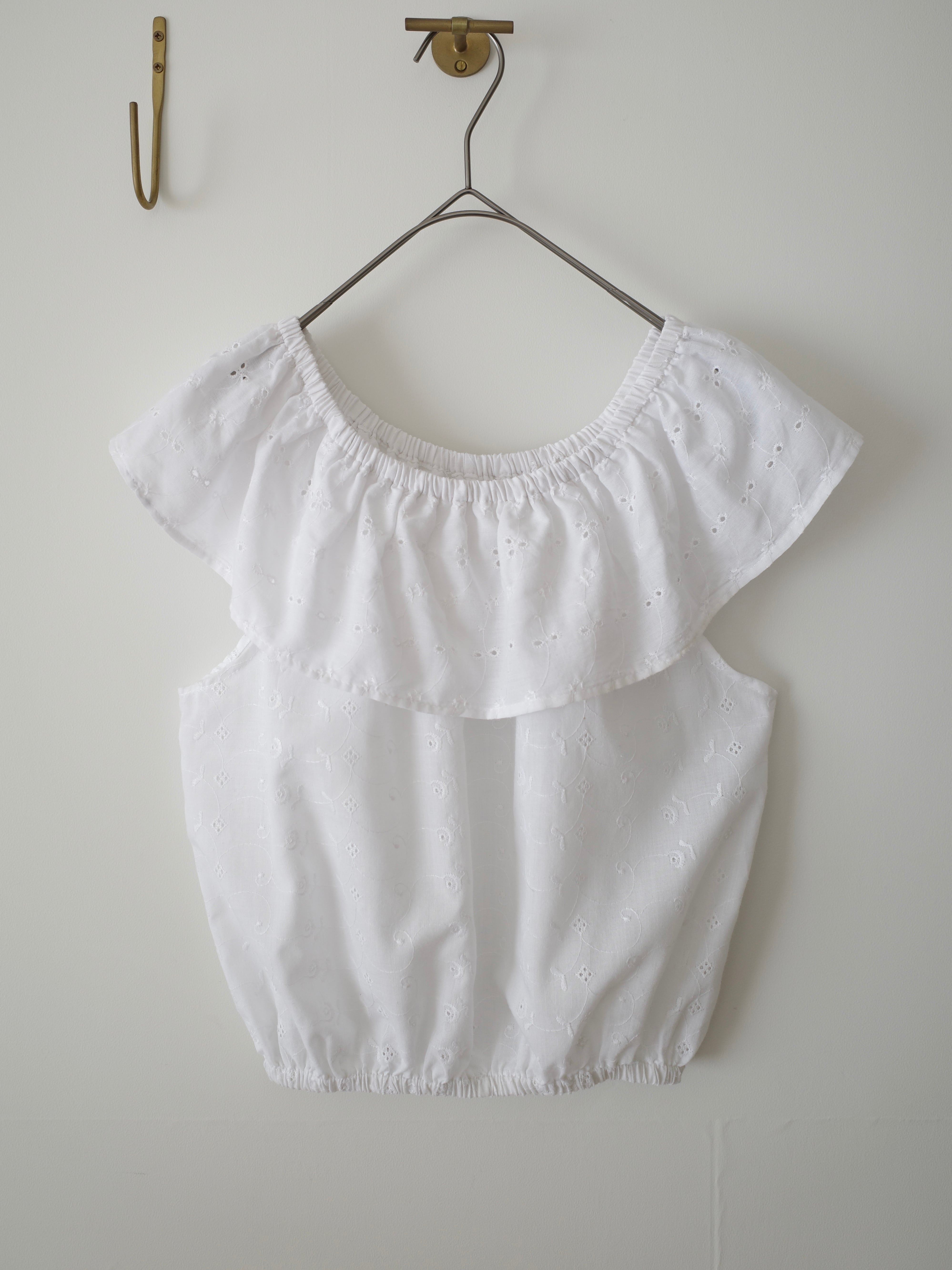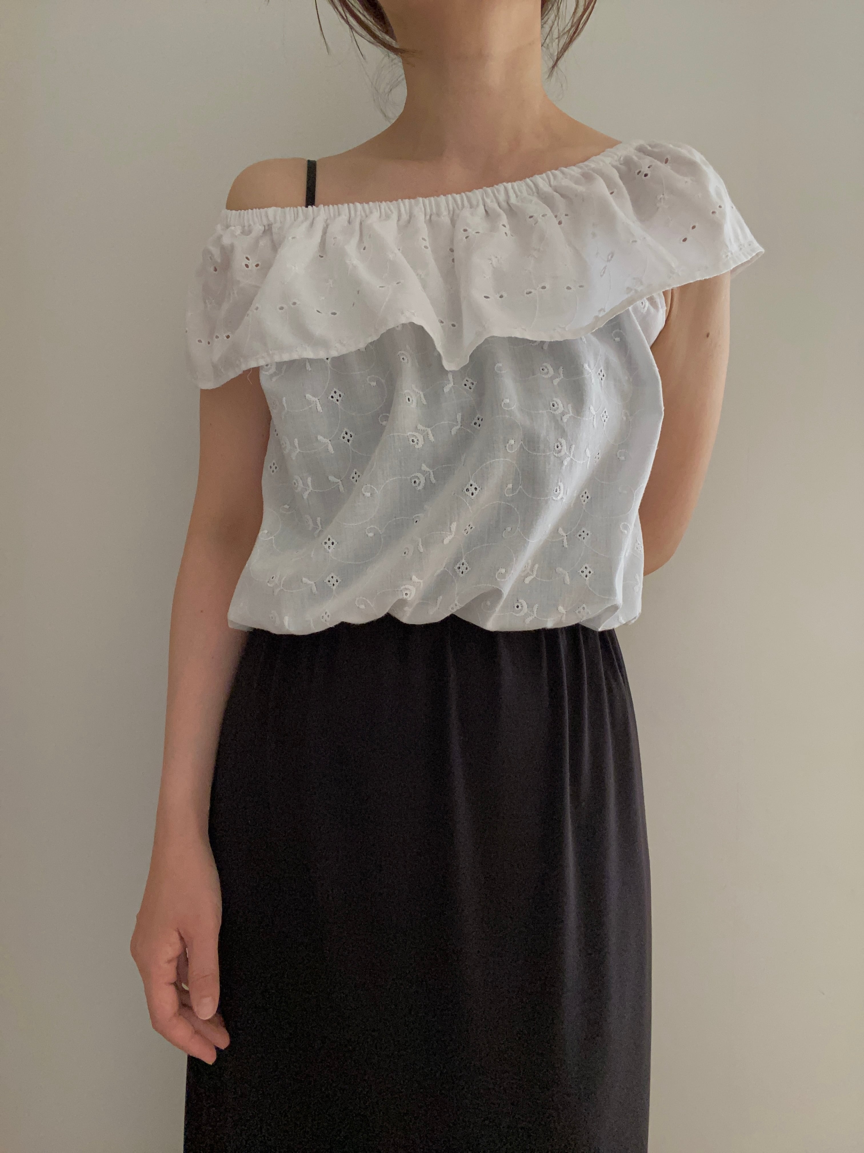 フリル襟が可愛いカットワークレースのブラウス。オフショルも出来ます◎