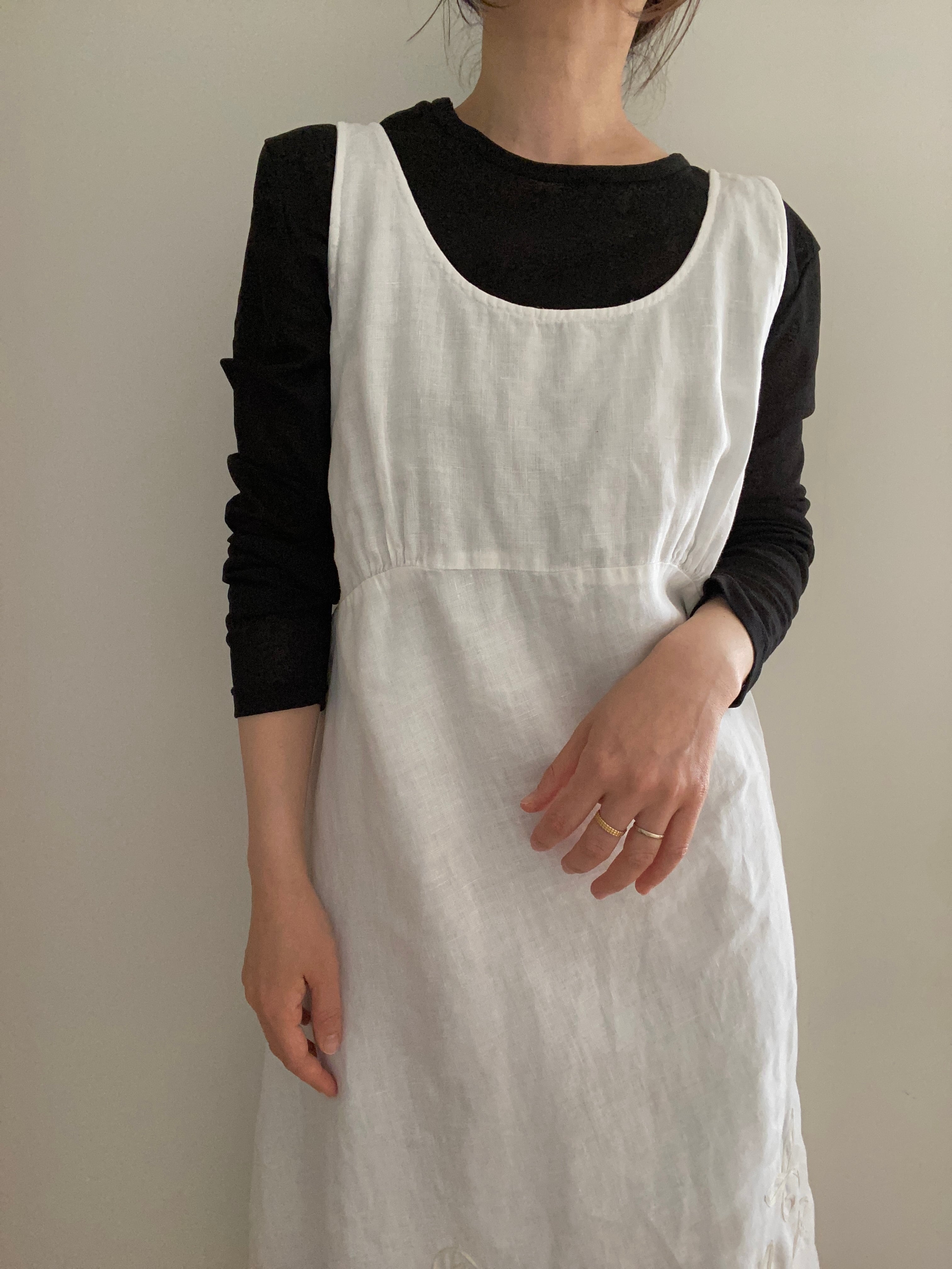 素材感を活かしたレイヤードスタイルが楽しめるリネンドレス。